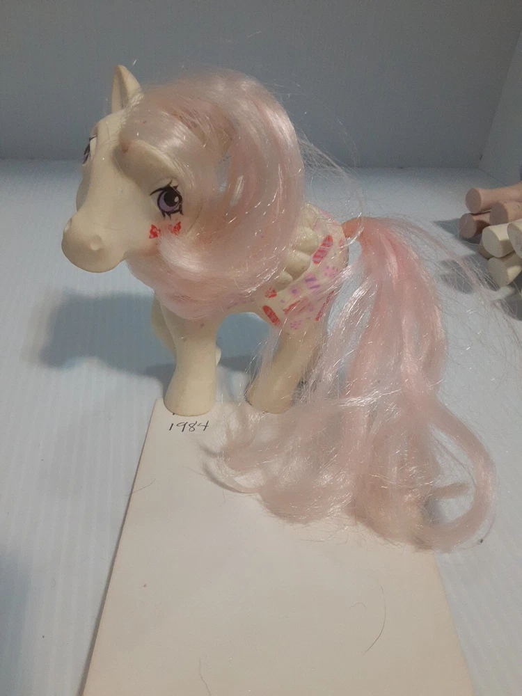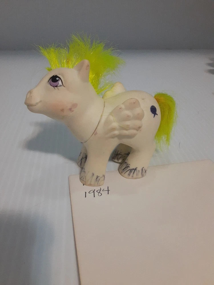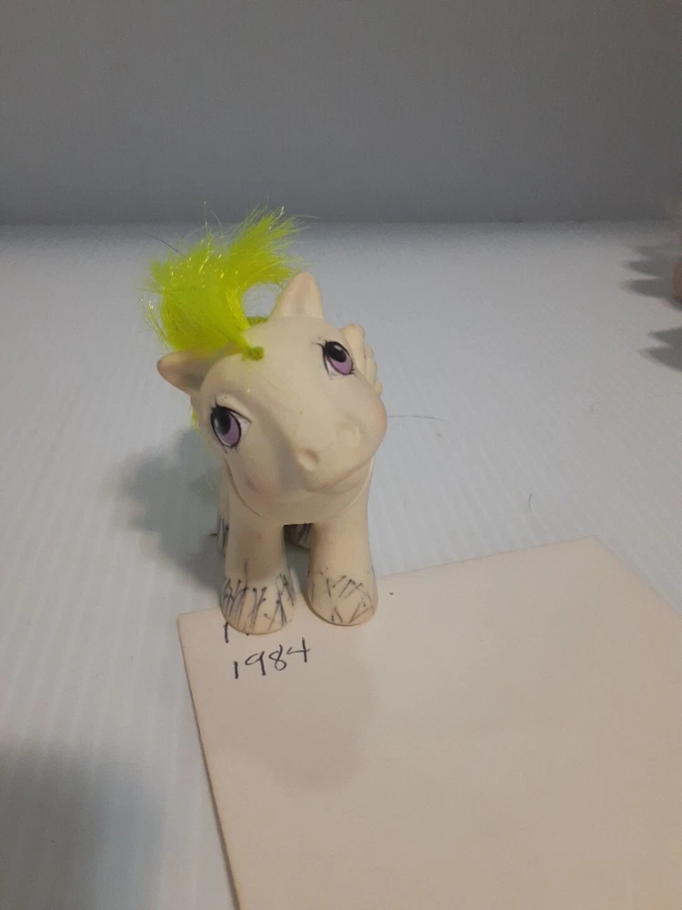 This lot of Little Ponies has led an exciting life and they wear their playtime scars well. A few have visited the Pony salon and from the looks of it, they did that sometime in the 90's! These are toys you can love or your kids or grandkids, and they will serve you faithfully. All of them made before 1987 are made in Hong Kong, and the youngest blue one hails from China. They have lived together for decades and are ready to live with you!