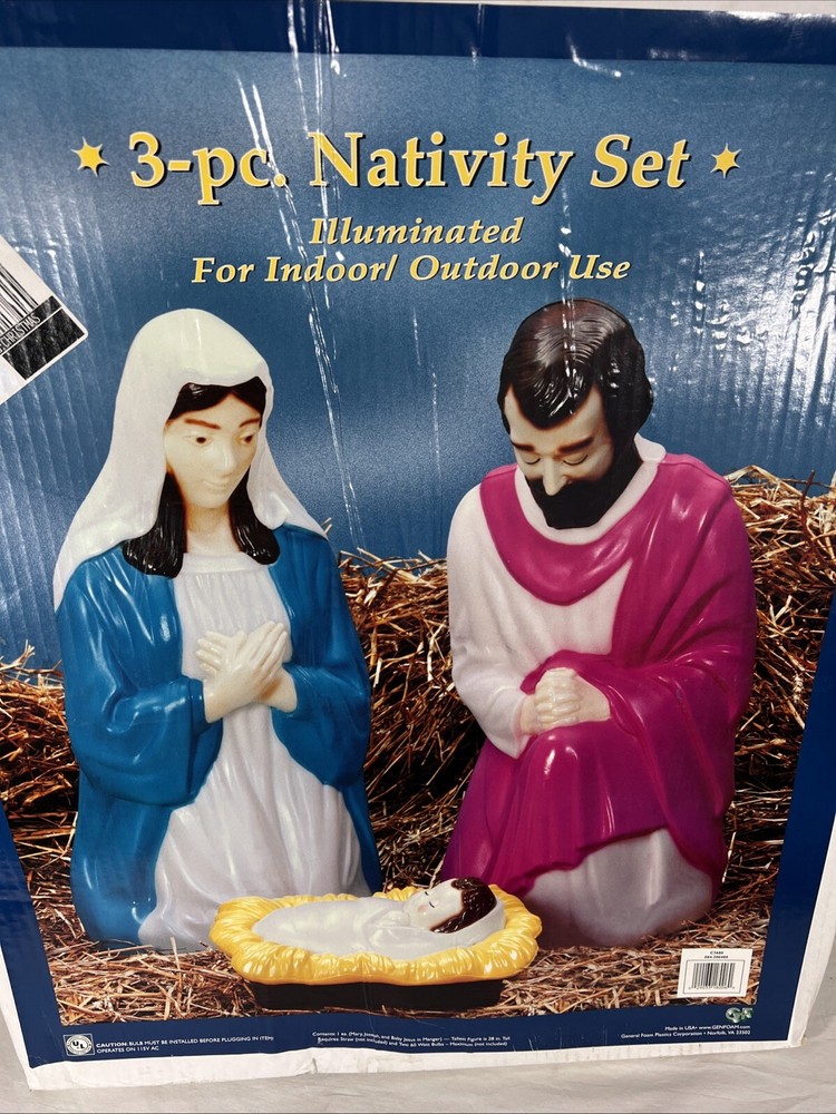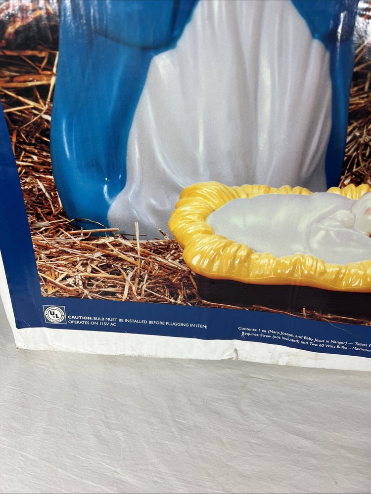 Vintage Nativity Set 28 Inch Lighted Blow Mold Mary Joseph Jesus NOS