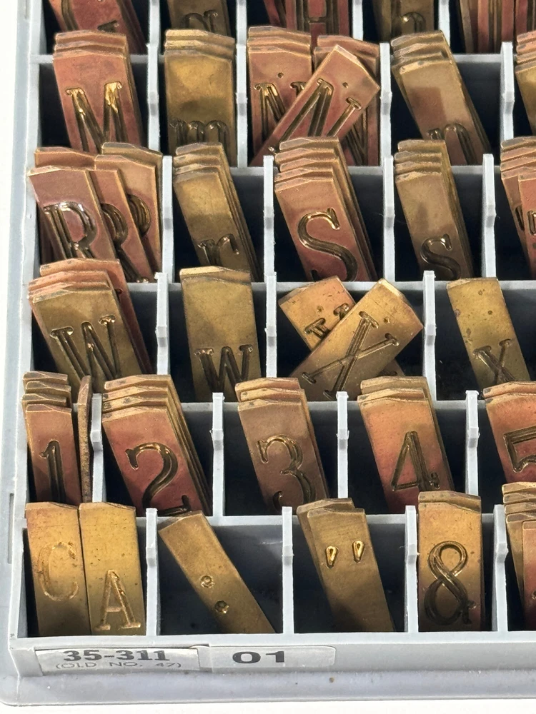 Vintage New Hermes 1.25" Brass Engraving Letters & Numbers Set of 47