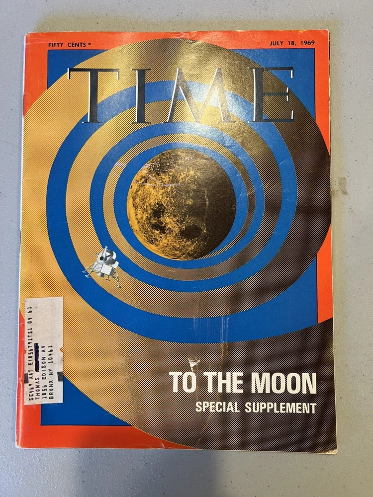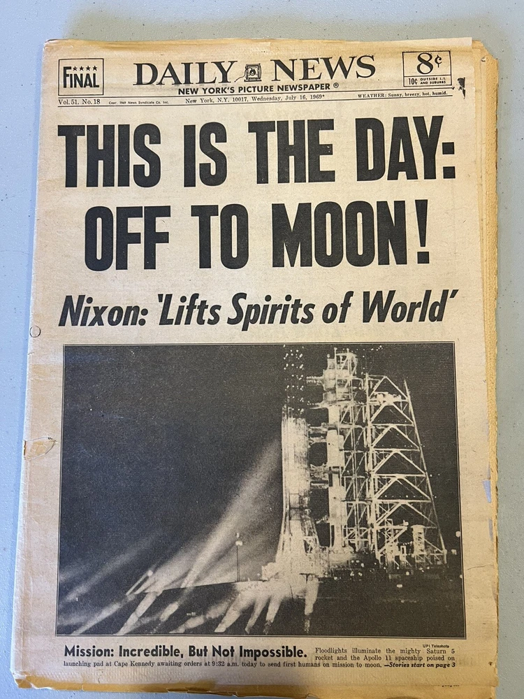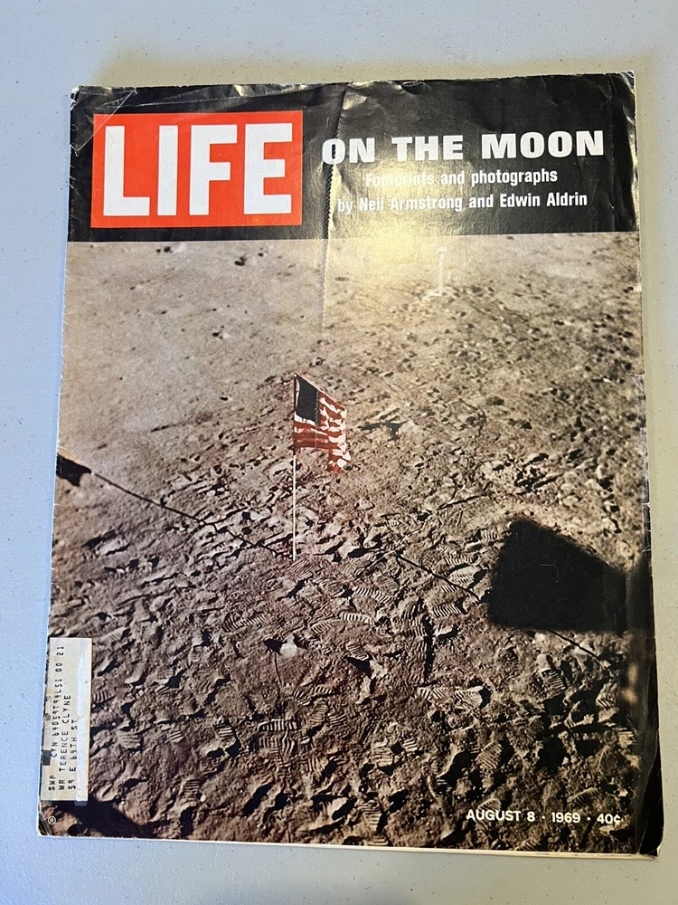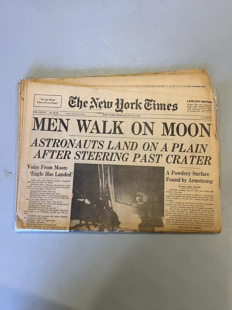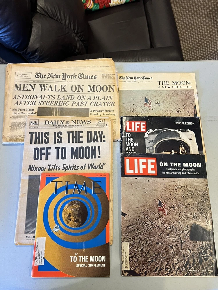 Three 1969 Newspapers and three 1969 magazines covering man's landing on the moon. All in good condition.