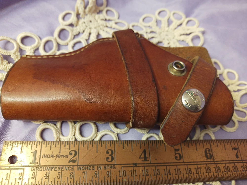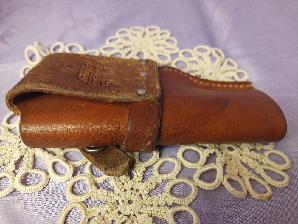 This vintage holster is a true gem for any cowboy or western enthusiast. Crafted by George Lawrence, it is made of high-quality leather that exudes a classic western vibe. The holster comes in a beautiful brown color that complements any outfit, making it a versatile accessory for any occasion. With its durable construction and timeless design, this holster is perfect for carrying your firearm. It is suitable for a variety of categories, including holsters, belts and pouches, hunting, and sporting goods. Whether you're looking for a vintage touch or a functional accessory, this holster is sure to impress.