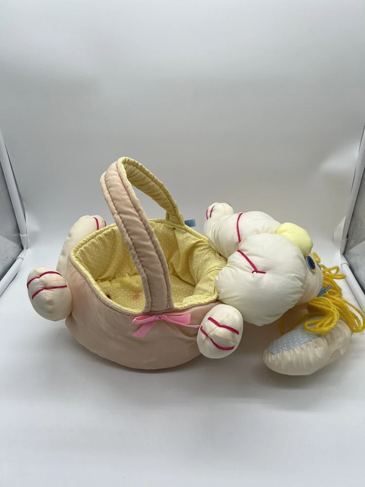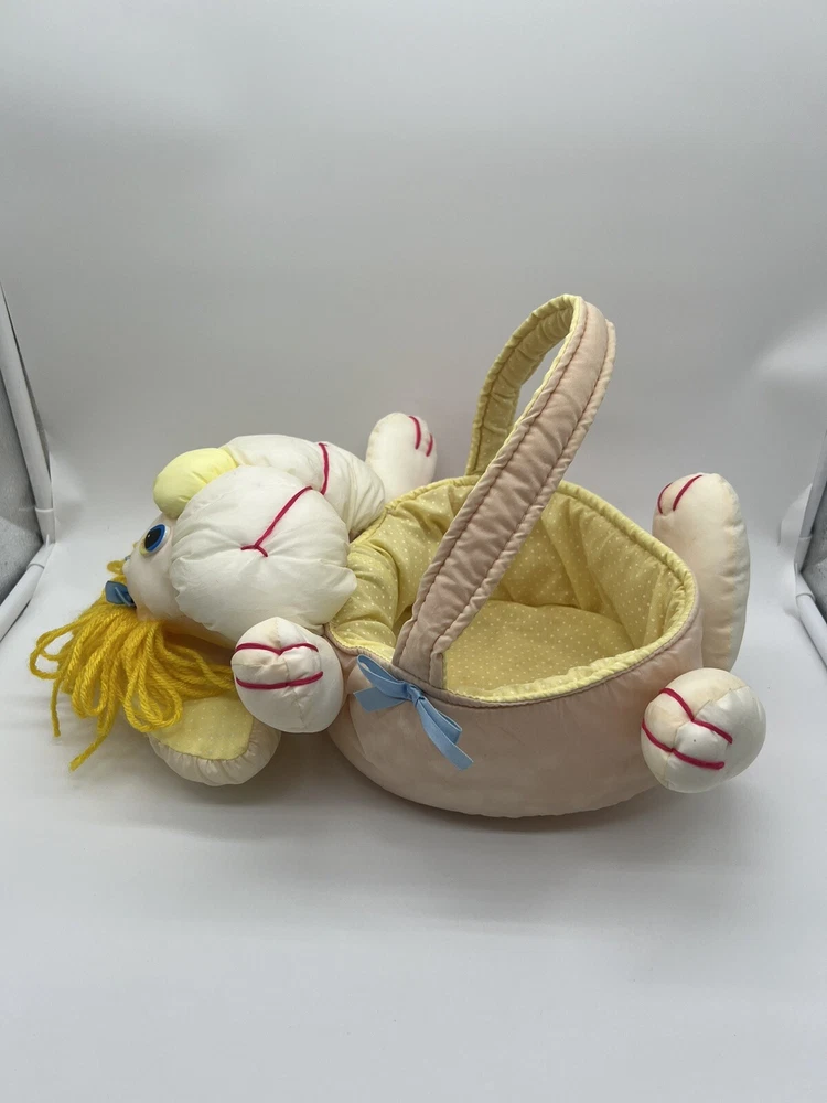 Vintage Nylon Plush Easter Bunny Rabbit Basket 1980's Puffalump Style Used, damaged and dirty same like picture 5th showed. Item: N13