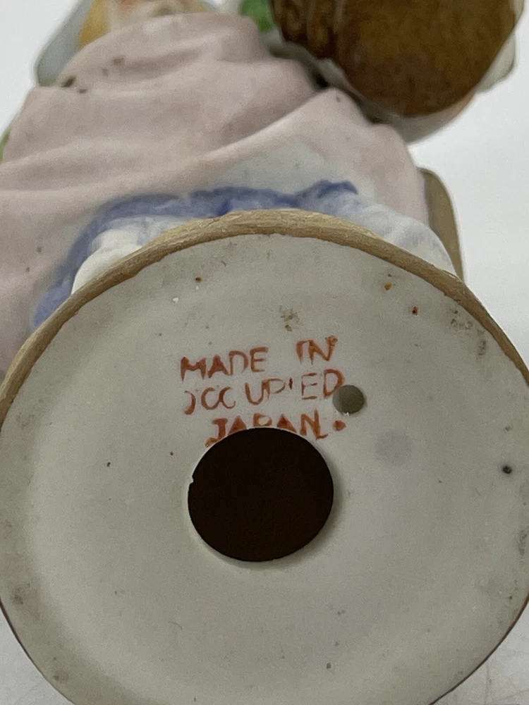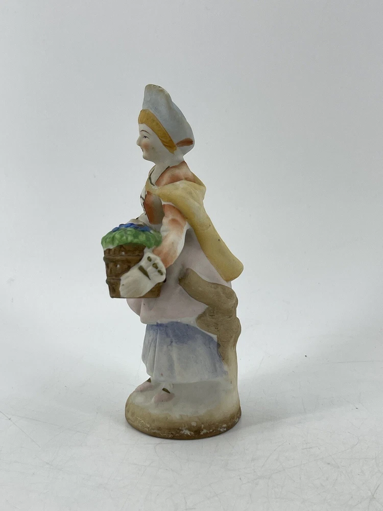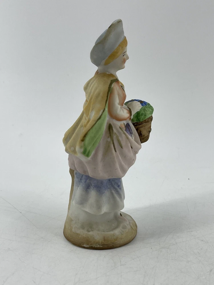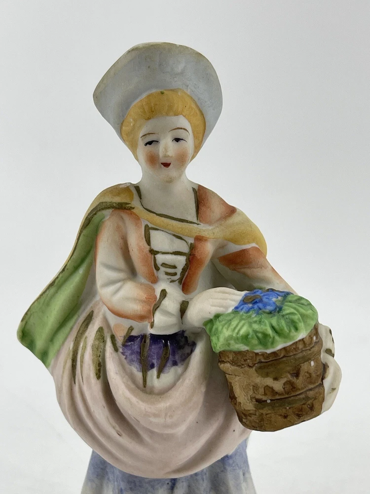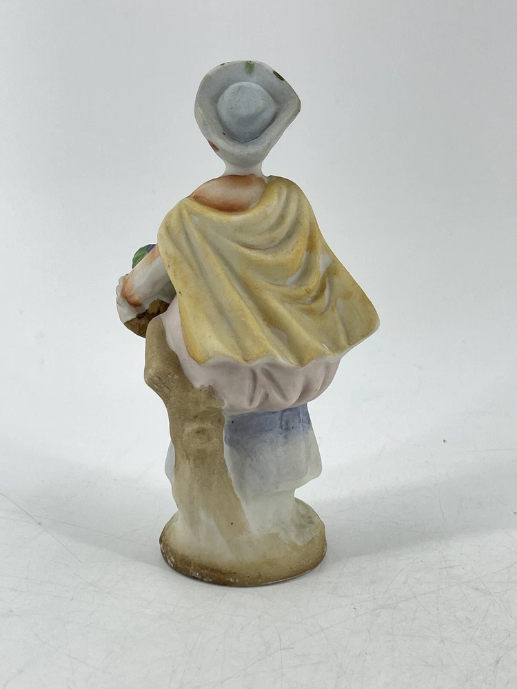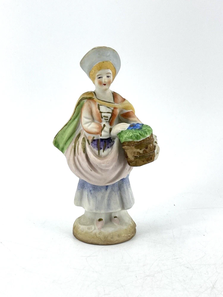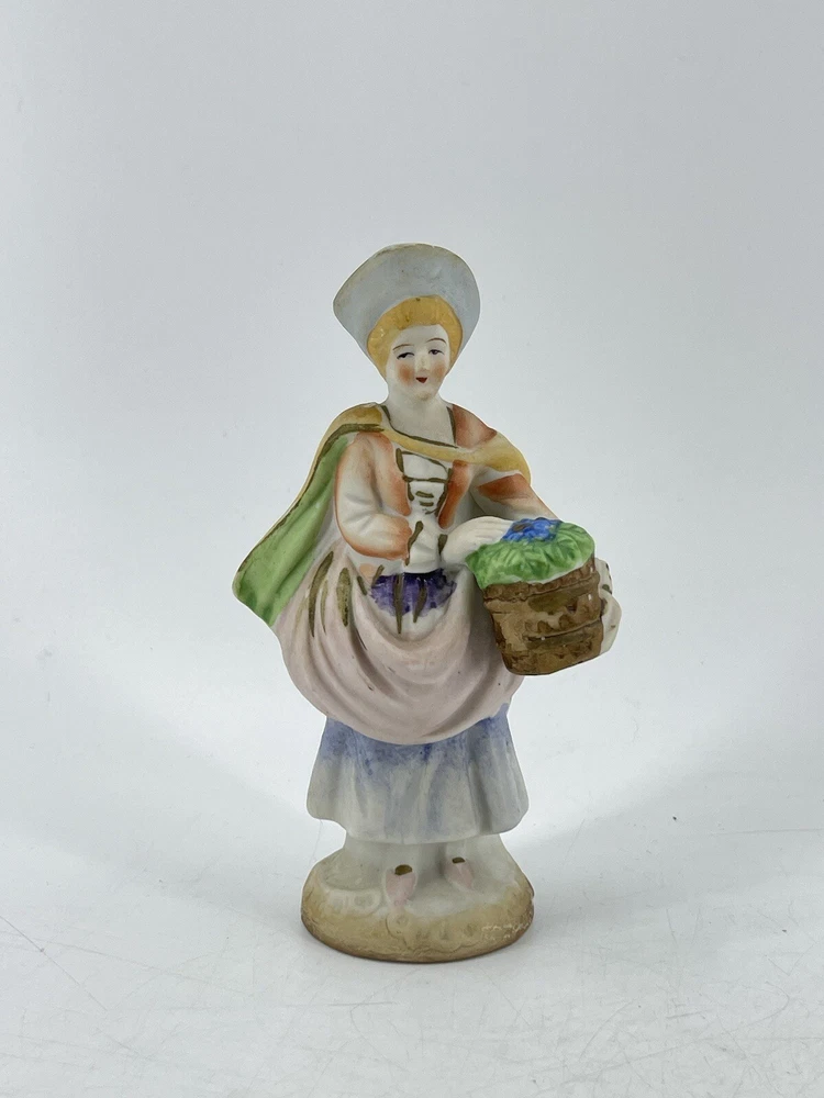 Vintage Occupied Japan Victorian Woman Hand Painted Bisque Porcelain Figurine 5 1/2" tall. Marked on bottom "MADE IN OCCUPIED JAPAN"
