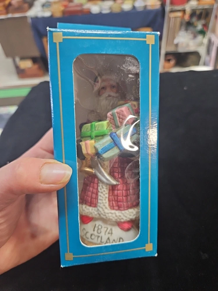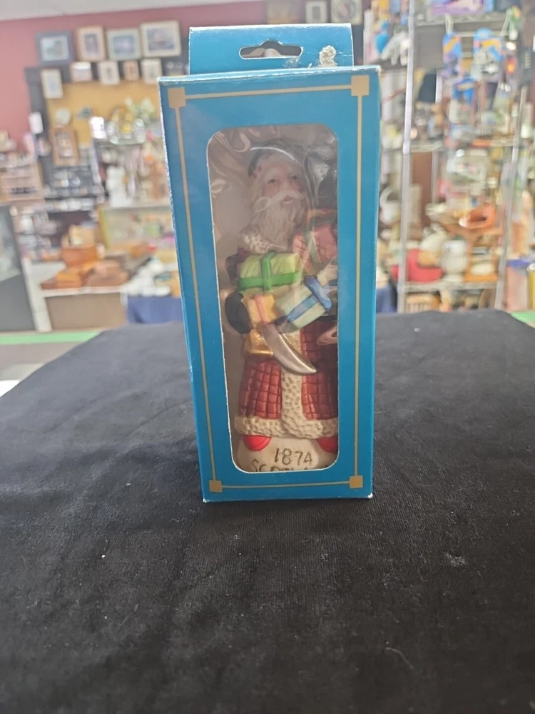 Add a touch of traditional charm to your holiday decor with this vintage Old World Santa figurine. Crafted from porcelain with a bisque finish, this limited edition collectible features a classic Santa design that is sure to delight. Whether you're a collector or just looking to add some festive cheer to your home, this figurine is the perfect choice. Measuring 5 inches in height and 2 inches in width, this small Santa figurine is ideal for tucking into a cozy spot on your mantel or shelf. It comes in its original box for safekeeping, and is a licensed reproduction from the late 20th century. Celebrate the season with this timeless piece from the Limited Editions collection by Dollar General.