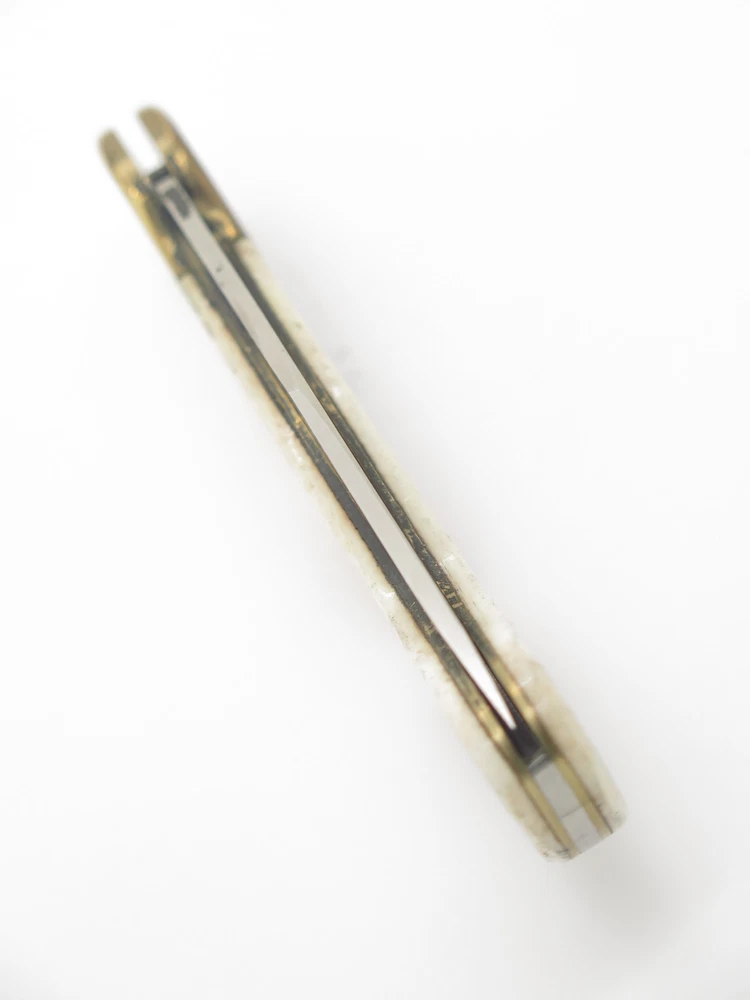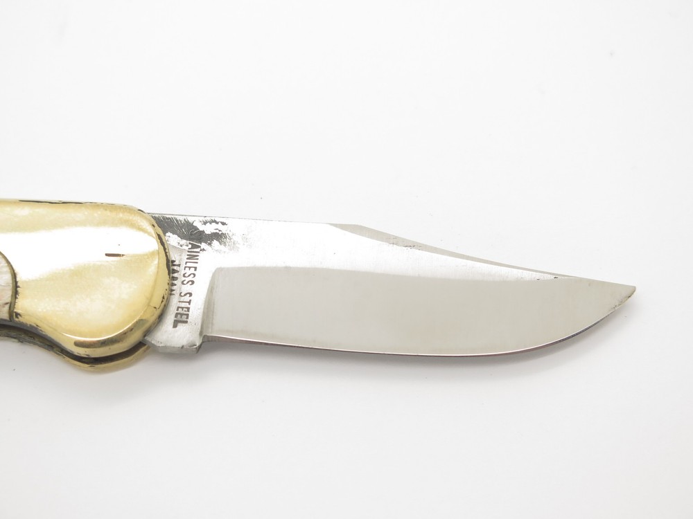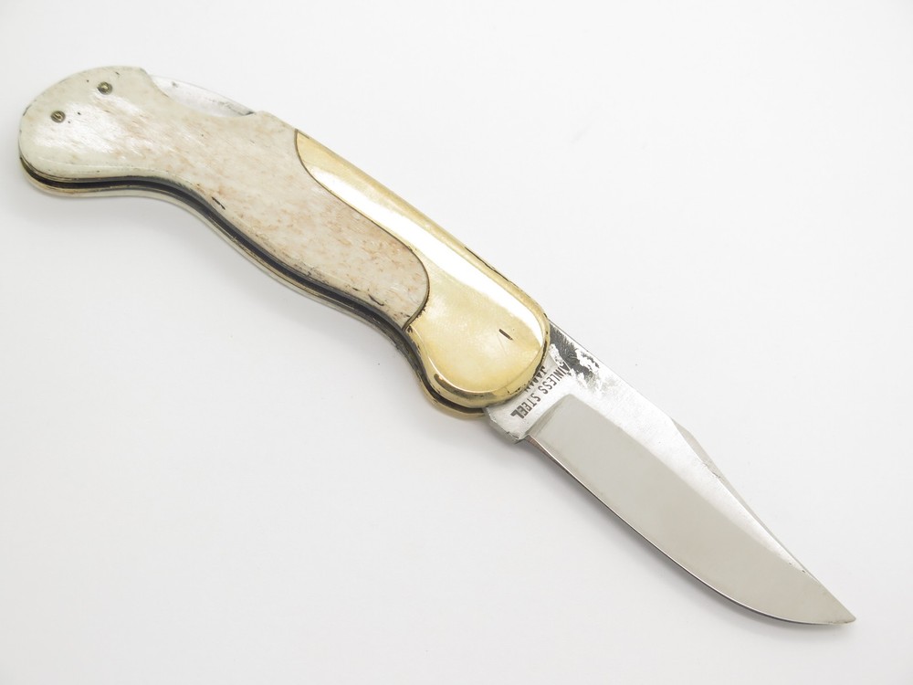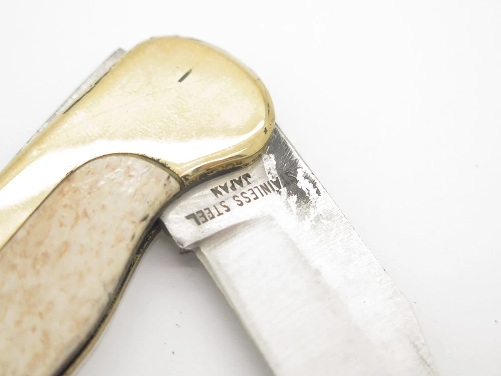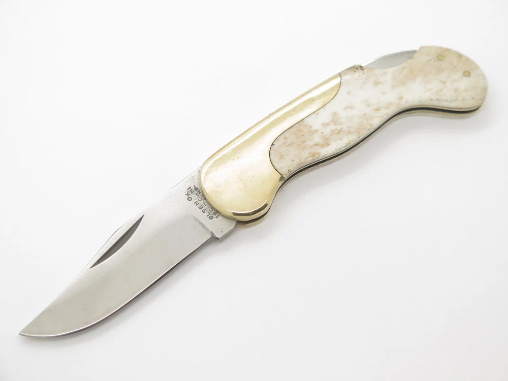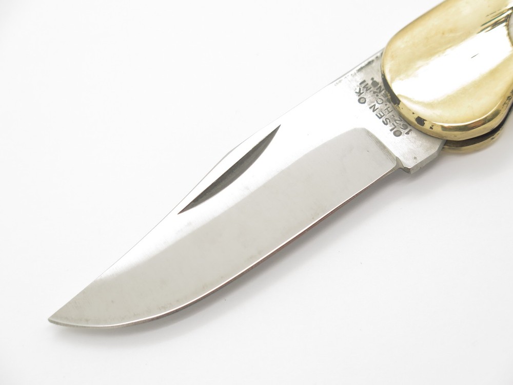 ePrague Contact Visit Store New Items Olsen 162 pocket knife This is an original Olsen OK 162 pocket knife made in Seki, Japan between circa 1978-1982. This is one of the finest designed lockbacks from the era, it is very thin, sturdy, yet elegant. In the late 1970s, Olsen teamed up with Seizo Imai to produce models in Japan at lower cost and this model, the Lil Brassy, was one of these knives. It features a sharp stainless steel blade, smooth bone handle, and classy art deco brass bolster. Unused, though with tarnish/handing wear/rust and the blade is a little tight not having much snap when closing. It is marked "Olsen Ok 162 - H.C., MI Pat. Pend" (Howard City) on the front and on the back is "Stainless Steel Japan". This is a great medium sized pocket knife at 3.5" long closed. Highly collectible, yet usable. Acquired direct from the closed factory of Seizo Imai and in storage for nearly four decades, this is a rare chance to own unused old stock from a bygone era. Stock photos. Knife only, no box. Product Highlights Model: Olsen 162 pocket knife Condition: Vintage old stock factory 2nd. Blade is tight closing and needs help to fully close. Original factory edge, with tarnish/handling wear/staining. The bone handle may be coming away from the liner and has small gap. Black buffing compound can be rubbed off. Made in Japan Folder Closed, or Fixed Overall Length: 3.5" Blade: 2.375" long, 440 Stainless Steel Handle: Smooth Bovine Bone (Bos taurus) Knife only, no box About Us A member of eBay since the year 2000, ePrague Knives has helped customers find the perfect everyday-carry knife as well as the “safe queen” collectible. Based in Post Falls, Idaho, we offer new and used knives and we specialize in obtaining rare cutlery direct from Seki, Japan. Online retail requires a company that is able to bring the showroom experience to the web - we do this with superior photography, detailed descriptions, great customer service, and speedy safely packaged shipments. Newsletter Click "❤ Save This Seller" on the main product page then go to "Saved Sellers" and check the box to subscribe to newsletter. Desktop users please click the "Sign up for Newsletter" link above. Terms Laws change and vary according to location. By purchasing, you verify that you are legally able to purchase the Product and you verify that you are over the age of 18 years and are aware of and in compliance with all local, state, and federal laws. You shall be responsible to check all applicable federal, state, and local laws concerning the purchase, ownership, use, and possession of any Products sold to you by ePrague, LLC. By purchasing Product, you verify that you are of legal age (no minors), and will use the Product legally and assume all responsibility. By ordering and purchasing Product from ePrague, LLC, you agree that the Product can legally be purchased and owned by you in accordance with all federal, state, county and local laws. ePrague, LLC and its employees shall be held blameless and will not be held liable for any infraction of laws by the purchaser. ePrague, LLC will not be held liable for any injuries from any item purchased from ePrague, LLC. Contact Can't find what you are looking for? Please contact us and we will be happy to help.