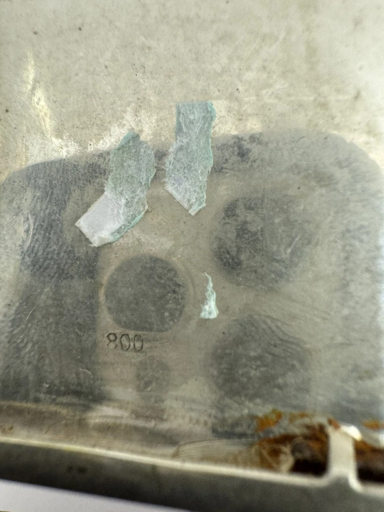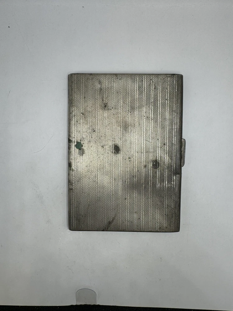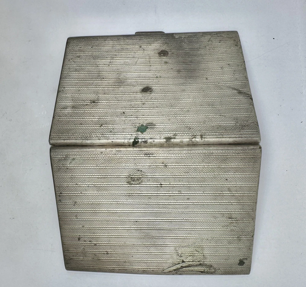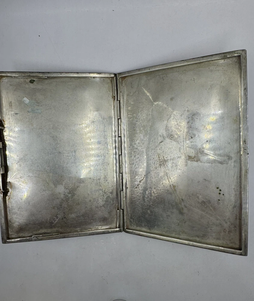 Stamped 800 silver cigarette case. Has ware and tarnish. 4.5” x 3.125”