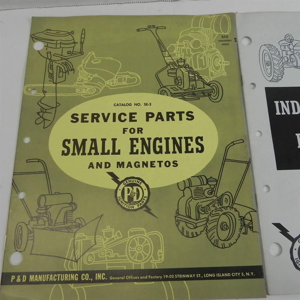 VINTAGE LOT OF 2 P & D MANUFACTURING SERVICE PARTS CATALOG FOR SMALL ENGINES TRACTORS INDUSTRIAL ENGINES FARM TRACTORS GOOD CONDITION NO TEARS See photos below for details. Contents included will be pictured. ABOUT US Jones Vintage Parts has been a family-owned business for over 40 years. We specialize in rare and vintage NOS and used parts for all makes and models from the teens to the 70s. We're passionate about uncovering and restoring the stories of the treasures from your grandparents and great grandparents history. We believe in breathing new life into the world's first modes of transportation. New vintage all the time! SHIPPING INFORMATION Purchased items will generally ship Monday through Friday, within 3 days via USPS Flat Rate or First Class upon payment receipt. Larger items will be shipped via FedEx Ground or UPS. Multiple same-day purchases will be combined for discounted shipping (request a revised invoice to receive bulk shipping discount or notify us of future purchases). International shipping also available. RETURN POLICY Our goal is your satisfaction. If you are unhappy with your order for any reason items may be returned for parts credit within three (3) days of receipt, and you will be charged a 10% restocking fee. There are no shipping refunds. Exchanges will be billed appropriate freight. All return items must be complete, undamaged, unaltered and in resale condition. You may be interested in our other eBay listings . Powered by SixBit's eCommerce Solution