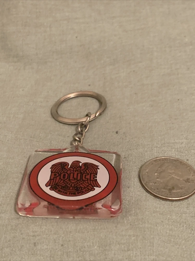 Vintage POLICE Acrylic Rock Band Logo Keychain. VTG. Sting Music Rock n Roll.