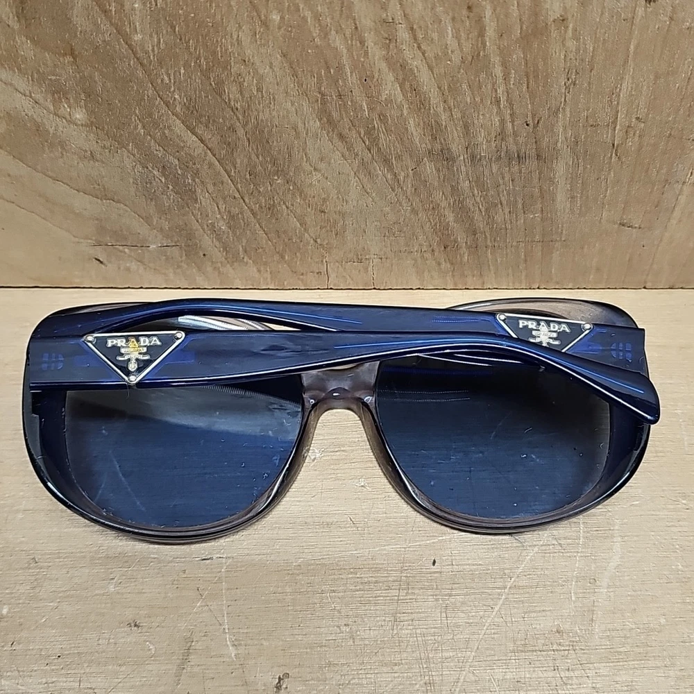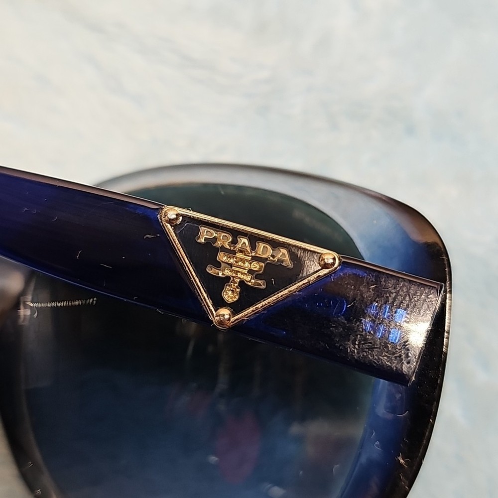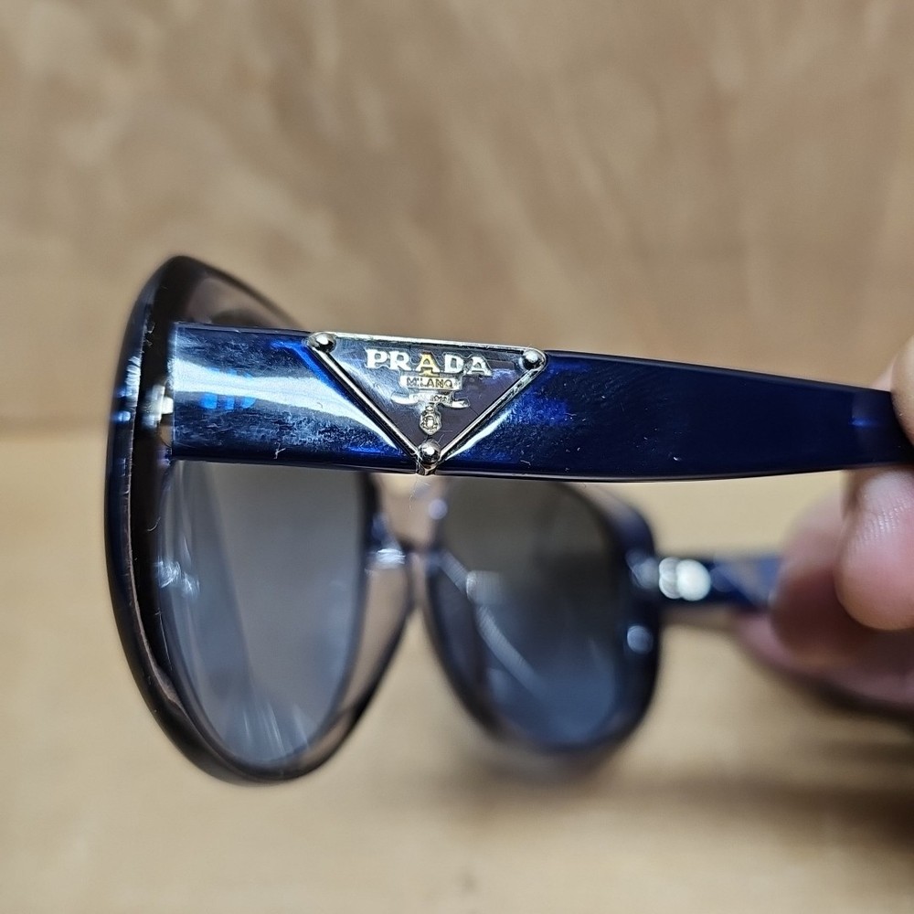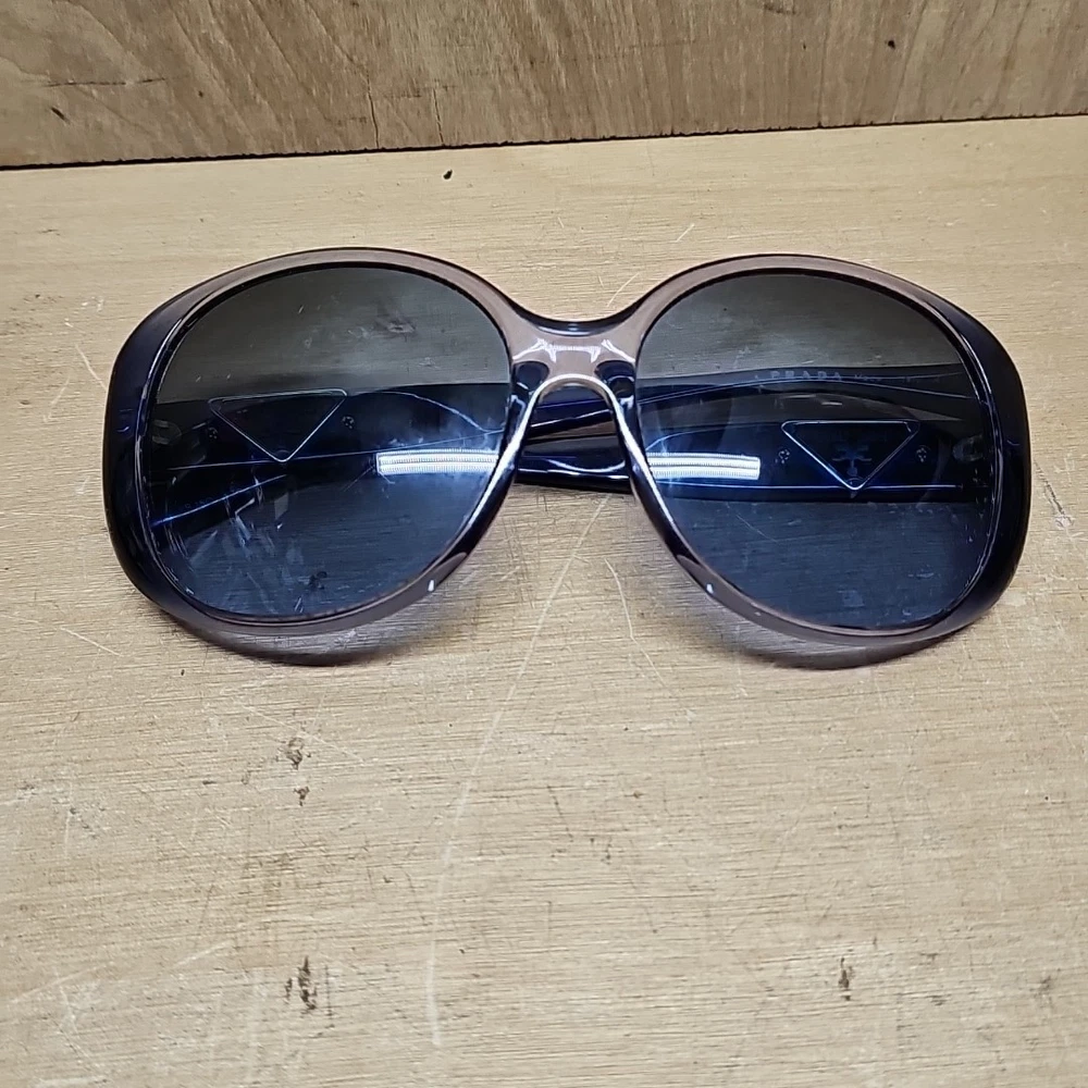 FRAMES ONLY LENSES ARE SCRATCHED Elevate your style with these luxurious PRADA SPR15O sunglasses, crafted in Italy with the finest materials. The black acetate frame features the iconic PRADA logo and supports polarized and gradient lenses for ultimate visual comfort. These oversized sunglasses are perfect for women who want to make a statement with their designer eyewear. The 135 mm temple length provides a comfortable fit, while the gray polycarbonate lenses offer UV400 protection against harmful rays. Add a touch of sophistication to your look with these butterfly-style sunglasses that are sure to turn heads.