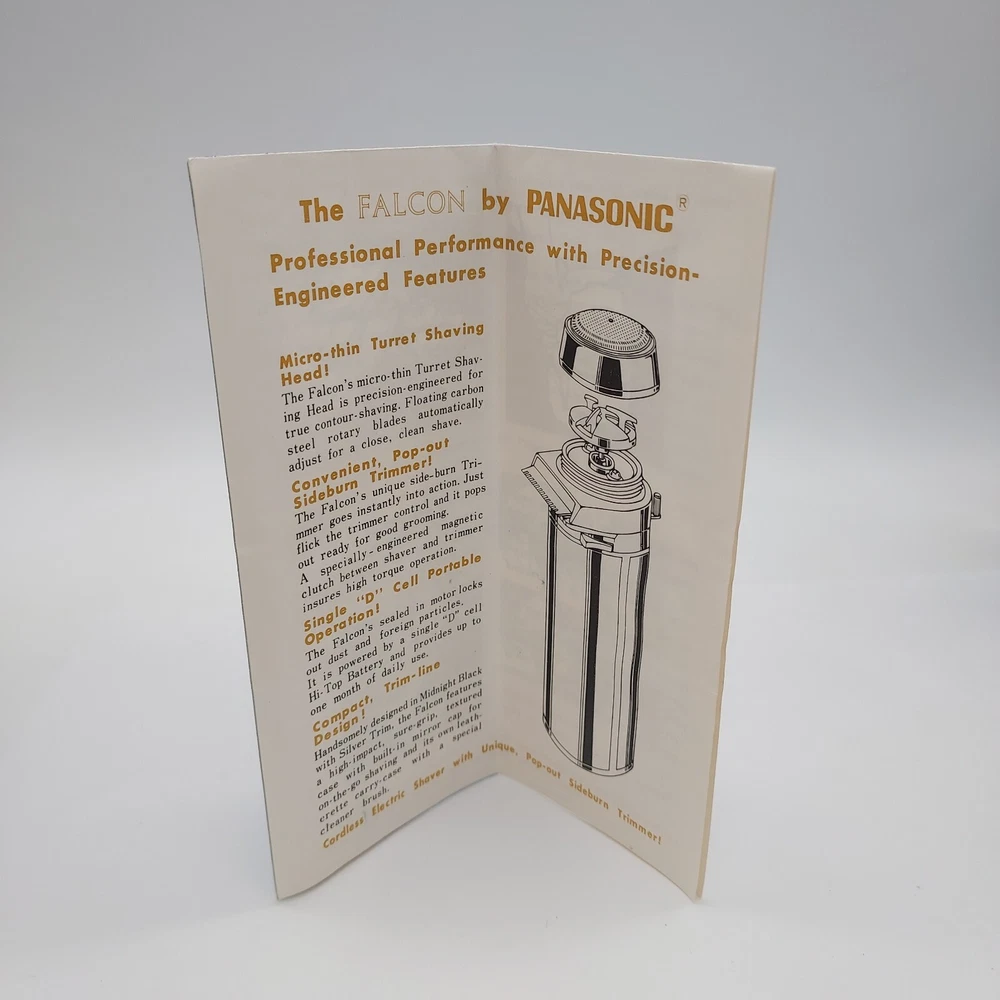 Free eBay listing template designed by dewiso.com Vintage Panasonic Falcon ES-58 Cordless Electric Beard Shaver Trimmer Mens Thank you for taking a look at this item. If you have any questions, feel free to ask. This shaver is being sold as a new but open-box unit. It still has all of its original paperwork, case, box, and accessories.