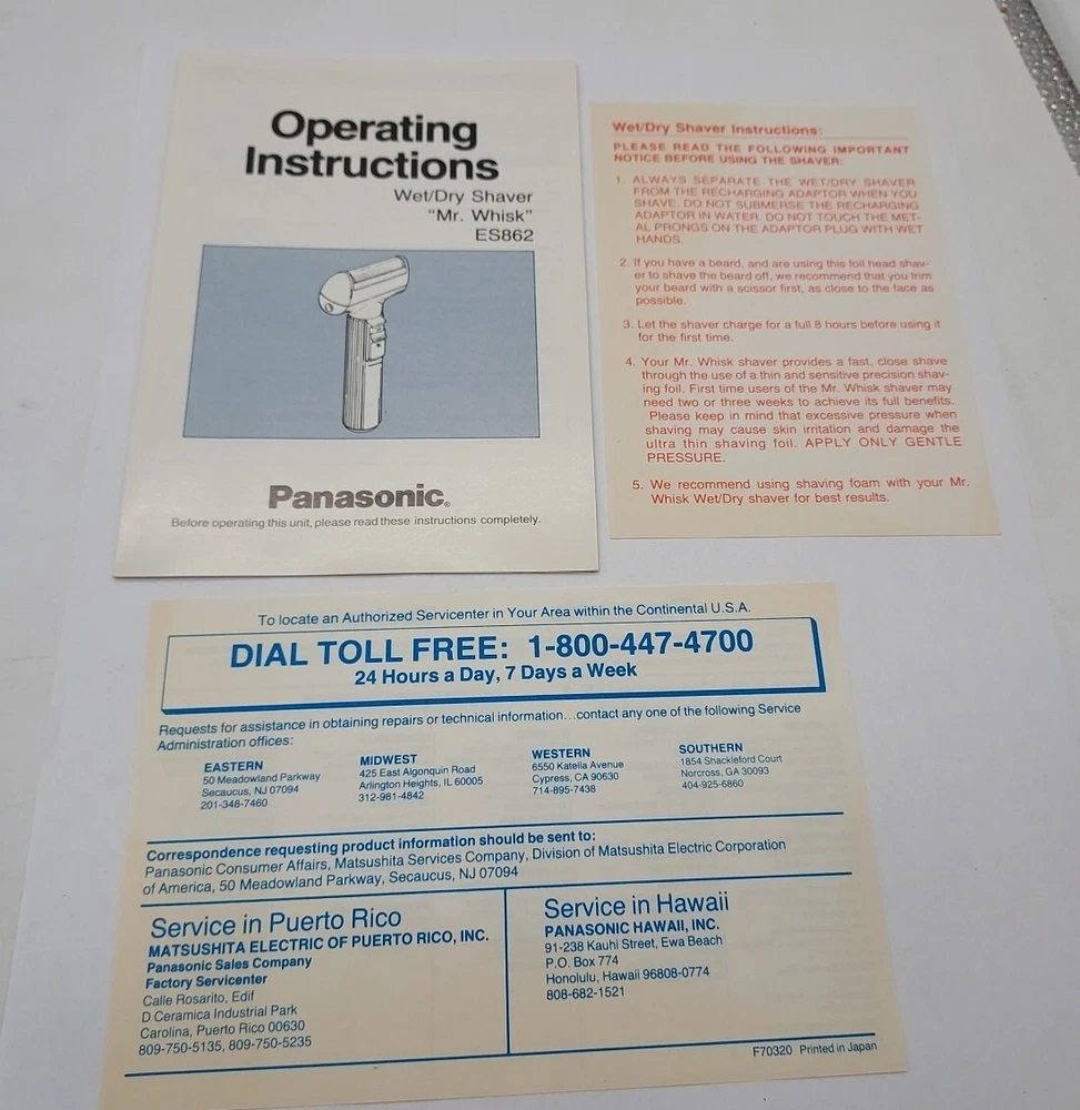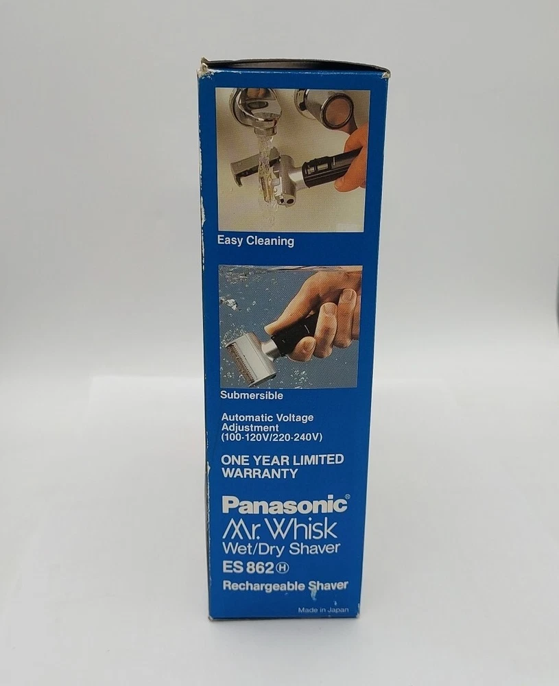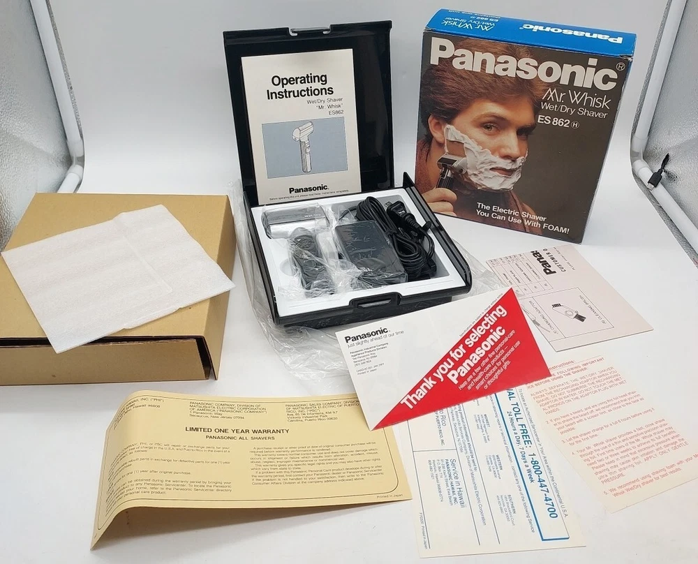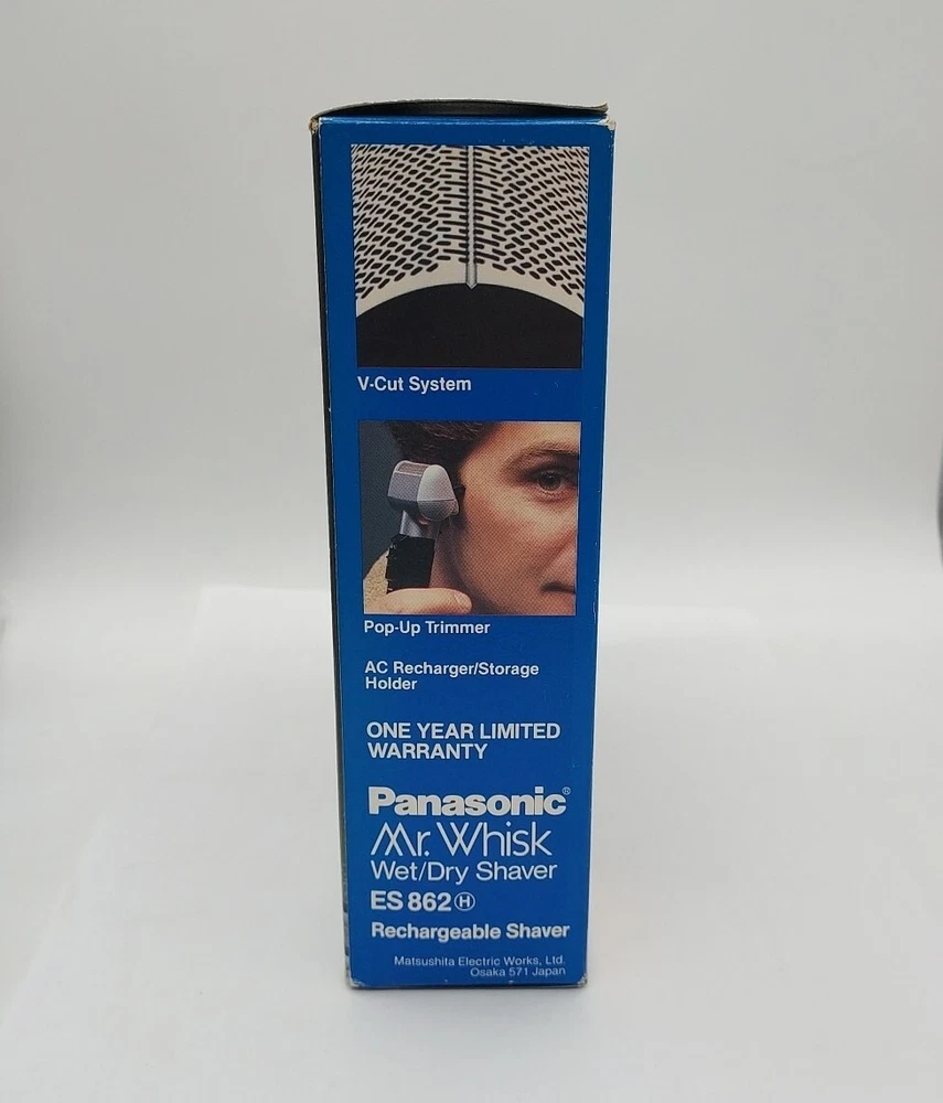 Vintage Panasonic Mr. Whisk ES 862 Wet/Dry Electric Shaver New in Box NOS This shaver is in its original box and has all of its paperwork. It has never been used and is still wrapped in its original packaging. Hello, and thank you for taking a look at my listing! If you have any questions, please feel free to ask. Please see all of the photos for the exact condition of this item. In our store, we have many other unique items up for sale, Feel free to take a look. Thank you!