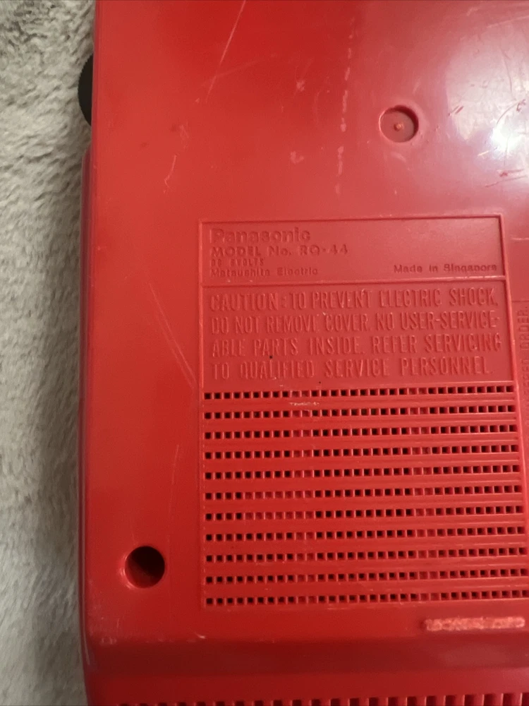 Vintage Panasonic RQ44a Red Portable Cassette Tape Player Recorder Untested. Condition is Used. Shipped with USPS Priority Mail.