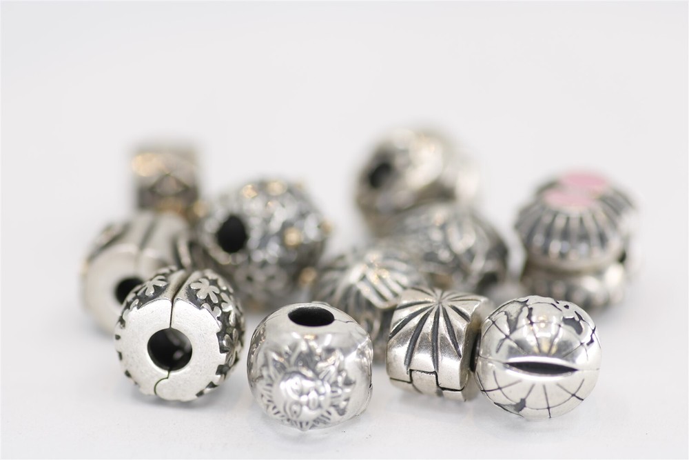 Vintage sterling silver Pandora set of ten charms. Six clip charms and four beads. Stamped 925 (Sterling Silver). 31.1 grams. NG01235 Item As Is. All stones not identified unless clarified above. All items are pre-owned and pre-loved. Stones may show minor nicks and abrasions or small signs of wear. Diamonds are graded using GIA standards by GIA Graduates. Diamond and gemstone weight is estimated by formula. The metal is stamped or identified by acid testing and/or XRF alloy analyzer gun. All items shipped USPS First Class, Signature Required Items over $1000 ship overnight, Signature Required Please message with any questions. We are available Monday through Saturday 10am to 6pm. Powered by SixBit's eCommerce Solution