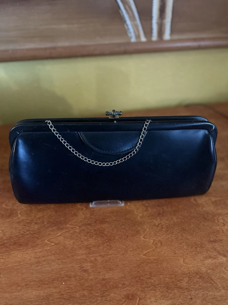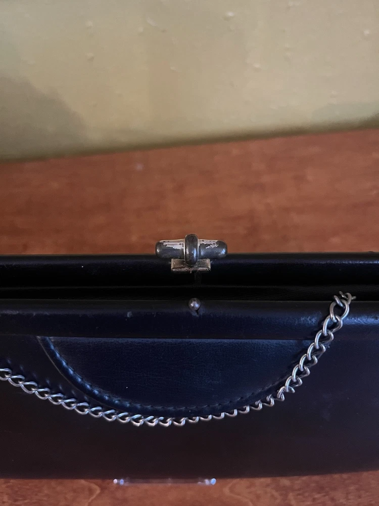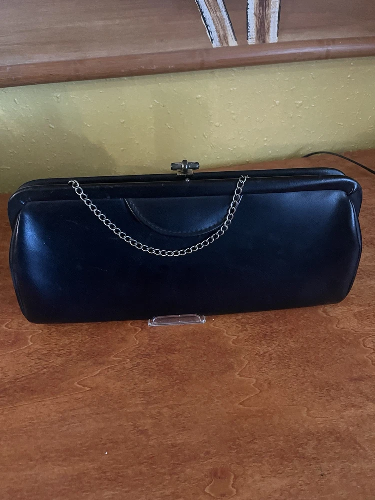 Vintage Dofan Dark Brown Leather Framed Handbag Purse Made in France