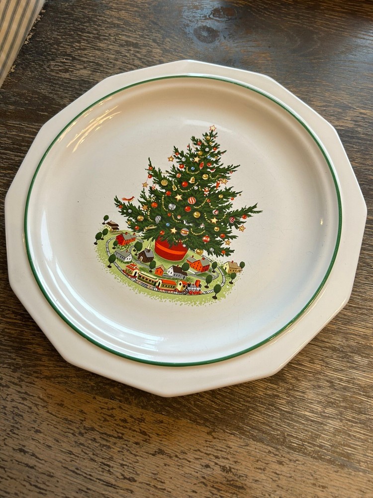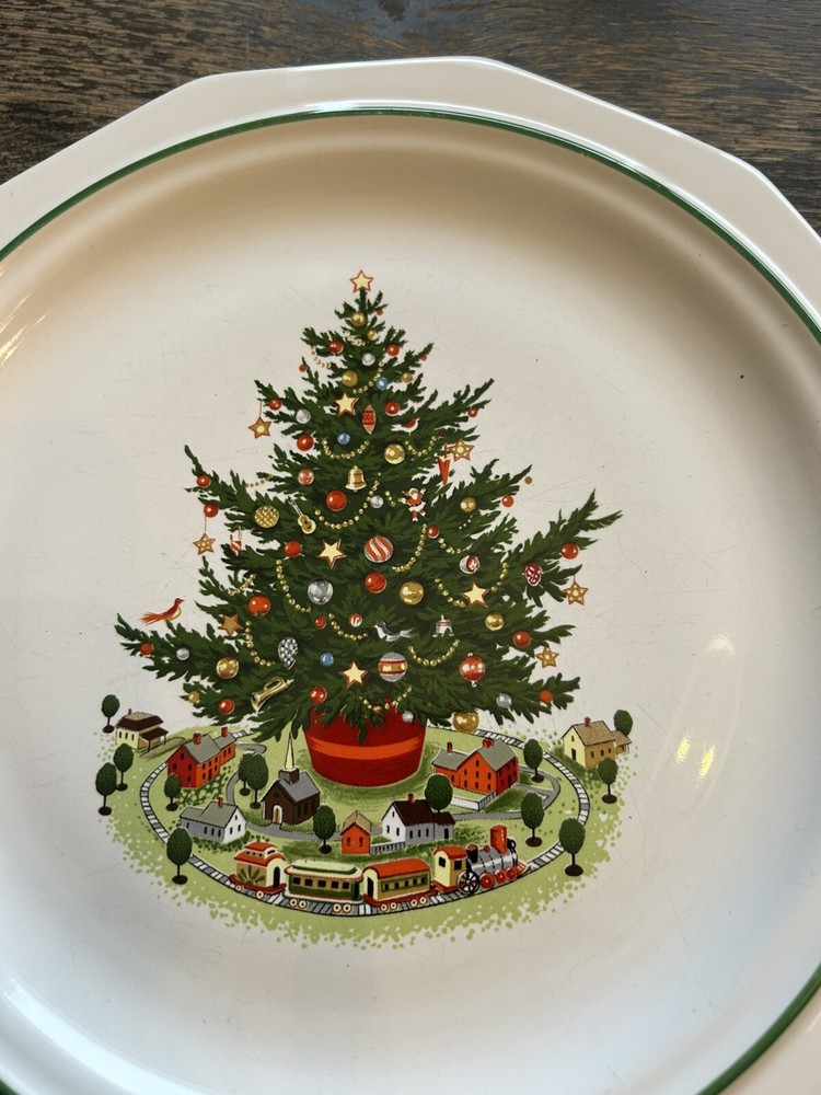 Vintage Pfaltzgraff Christmas Heritage 10 Inch Dinner Plate Tree Train Set of 2