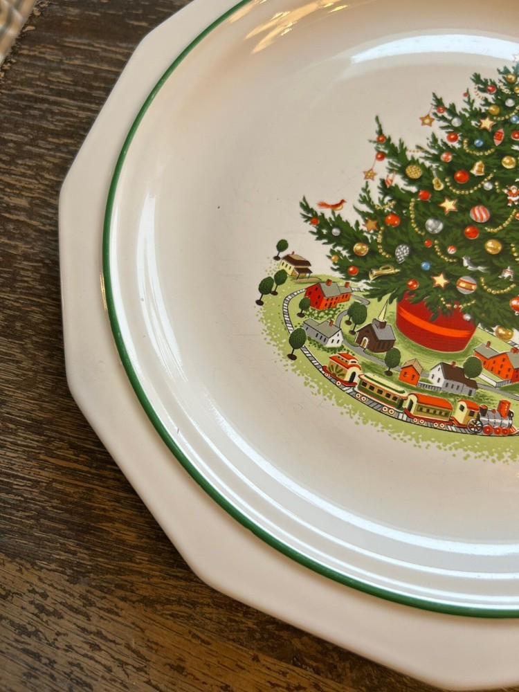 HomeVintage Pfaltzgraff Christmas Heritage 10 Inch Dinner Plate Tree Train Set of 2