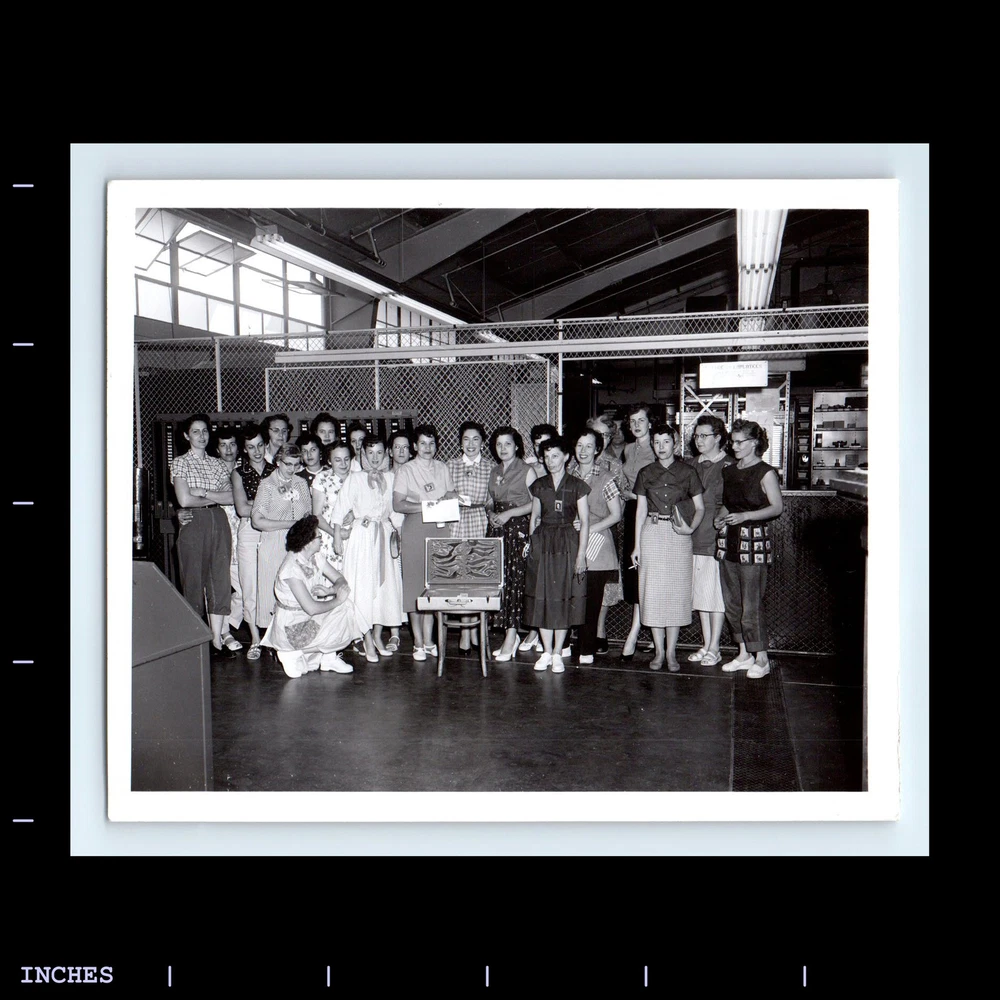 Vintage Photo WOMEN NEXT TO SUITCASE DISPLAY