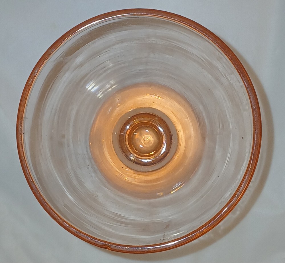 I can't find much information on this particular glass, other than its possibly depression era. It is more pink in color in person, in my opinion. There are no damages chips or cracks. It is not stamped or engraved or marked. You receive the same item pictured. Tape measure is shown for size reference. Carefully packed and shipped to you by the next business day