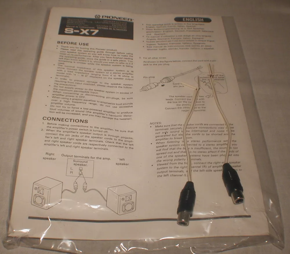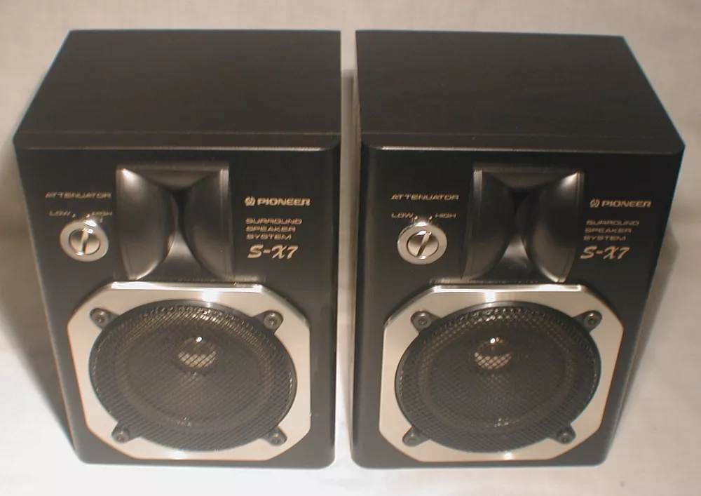Selling a pair of vintage Pioneer S-X7 Bookshelf Surround Speakers in their original found new old stock condition . Rare Estate Find. The estate was filled with high quality electronics and unique collectibles. The speakers have never been used and in mint condition. Includes manual and wire connectors. What you see in the pictures is exactly what you will receive. I did not clean or polish but already look new. See pictures for details and condition. Check my other listings for many unique hard to find collectibles. Sh ipping Terms: Insurance and tracking are provided. Free Local Pickup. The speakers will be double boxed and safely packaged for shipping. Contact me with any questions or comments. Seller Terms: Buyer must contact seller within 2 days and payment should be received otherwise the seller may either sell or relist the item. Any payment not received within 3 days of the end of the auction may result in the notification to Ebay under their non-paying bidder policy.
