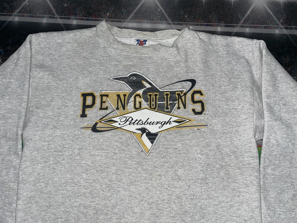 We try our best to fit the best description possible , condition and pictures please fill free for any questions or concerns thanks Note: has some wear on the neck and spots Show your support for the Pittsburgh Penguins with this vintage sweatshirt. Made for unisex adult fans, this gray crewneck is perfect for regular season games. The sweatshirt features the team's logo prominently on the chest, making it a great addition to any fan's wardrobe. This NHL licensed apparel is available in size XL and is perfect for any hockey enthusiast. Use it to cheer on your favorite team or as a casual outfit for everyday wear. Get your hands on this unique piece of fan memorabilia today!