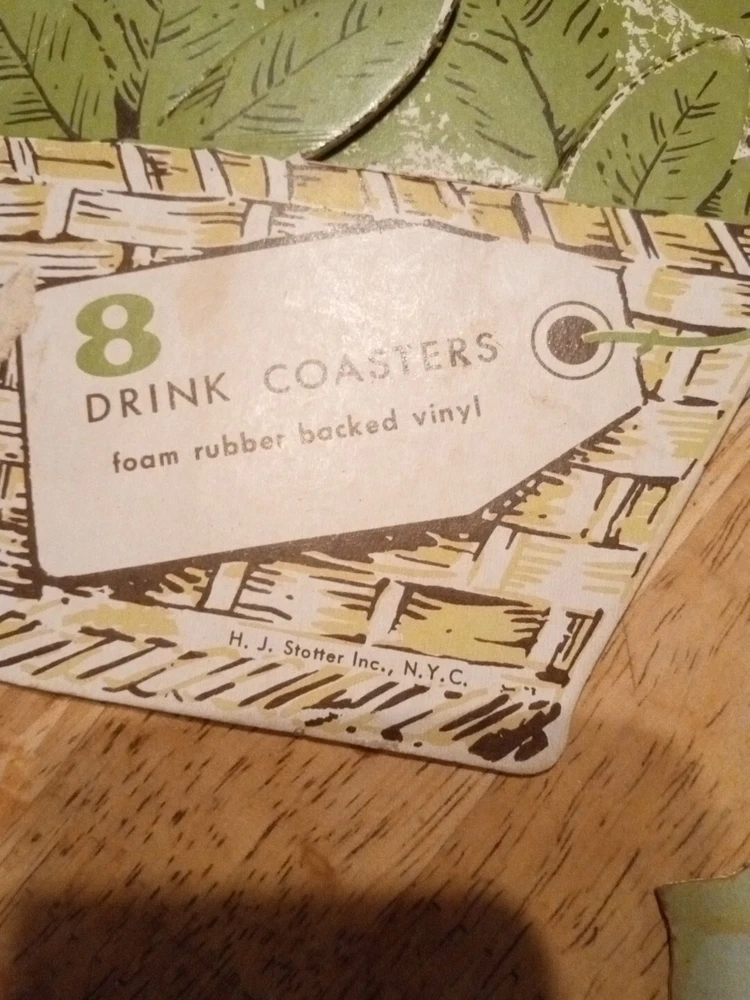 Type:Drink Coasters/Furniture ProtectorsMaterial:Plastic, Non-metallic Metal, VINYL WITH FOAM RUBBER BACKSColor:MulticolorNumber of Items in Set:7Shape:FLOWERSPattern:LeavesBrand:H.J.STOTTER INC. N.Y.C.
