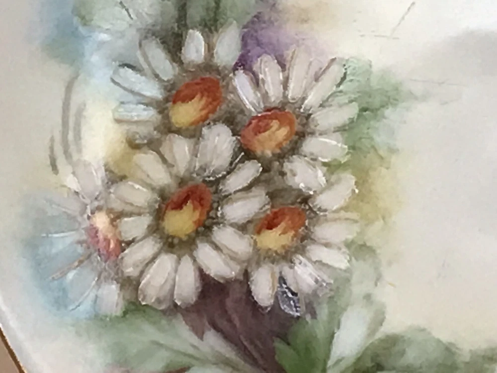 Circa 1908 - 1939 Thomas Bavaria Hand Painted Bread & Butter Plate Chamomile’s. Condition is Used. Beautiful old plate with no chips or cracks. There is some minor scratching on face of plate from what appears to have been use. Have searched this particular pattern and unable to find any others like it. Years of make is based off of mark. Please refer to picture as an important part of physical description of items and ask any questions prior to purchase. I am in the business of treasure hunting, recycling neat vintage items and collectibles, and finding forever homes for pre-loved items. I am not an antique dealer, and in an effort to make my items a real bargain I generally leave cleaning and sometimes repair to the final collector. The buyer pays shipping. Every effort is made to describe items to the best of my ability and pack items safely and securely. No warranties expressed or implied, all vintage items are in “as is” condition. Please visit my other listings to combine and save on shipping. Thank you for looking!!