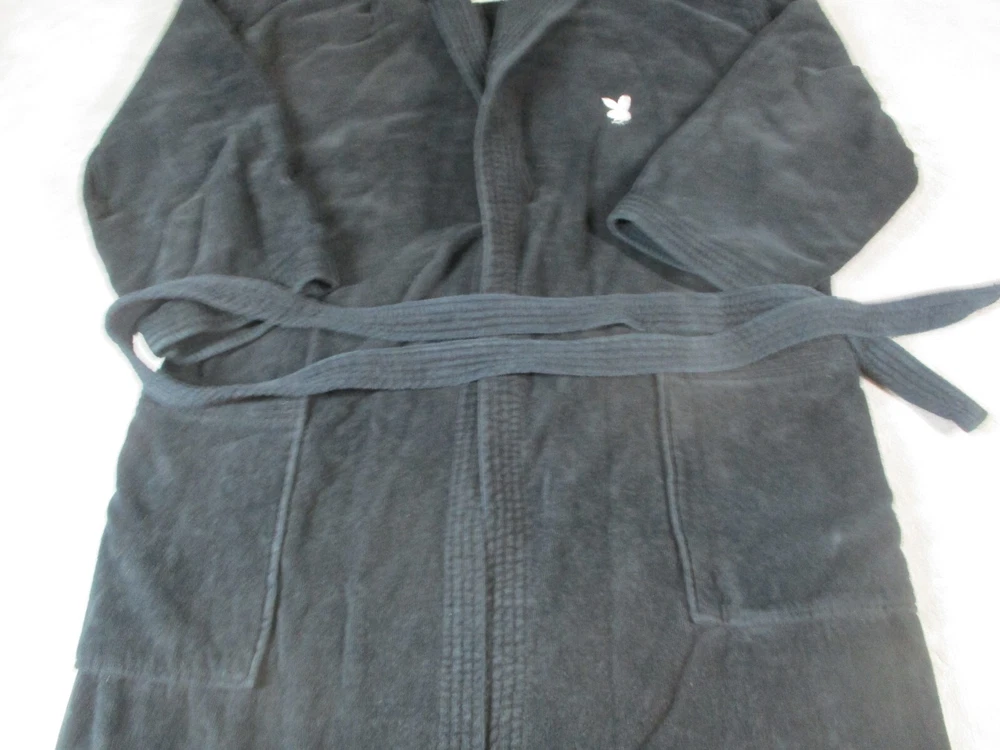 Vintage PlayBoy Home Bath Robe Black Adult Small Belted Terry Cloth Towel 90s Measurements: Please see photos above for all measurements Measured laid flat USED condition Minimal wear as shown. We will ship this item out via USPS Priority 2-3 Day Mail with a tracking number for confirmation We ship items out DAILY so it should be a fast delivery! Please send over any questions you may have we will answer most questions as quick as possible! SEE SOMETHING ELSE YOU LIKE? WE WILL COMBINE SHIPPING ON ALL YOUR PURCHASES WITHIN SAME SHIPPING DAY. SEND OFFERS ON ALL THE ITEMS YOU WANT AND WE WILL SEND YOU AN INVOICE ONCE PACKED WITH PROPER SHIPPING AMOUNT. ONCE PAYMENT IS MADE, WE WILL SHIP OUT. Thanks for looking and please check back frequently as we add new items daily.