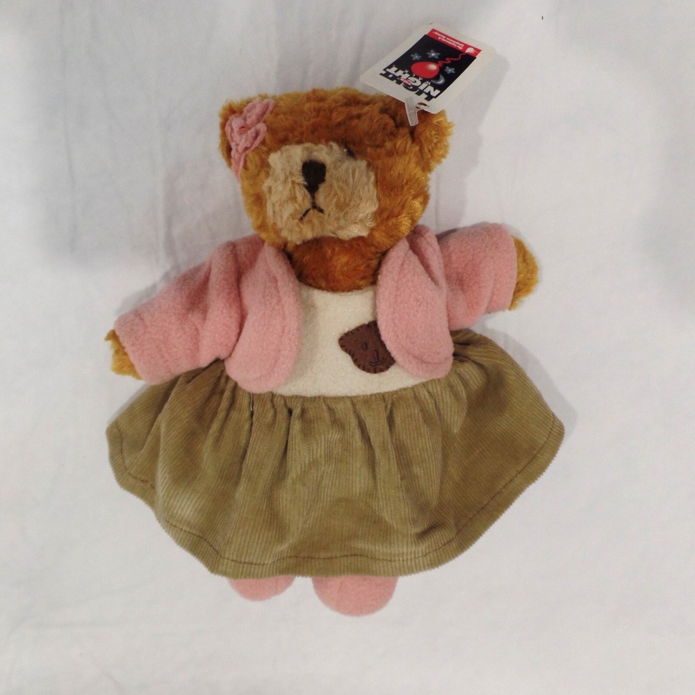 Light The Night Walk Plush Girl Teddy Bear Vintage W/ Dress Coat Hair Bow 2000 Good Pre-loved Condition. 9 Inches tall. Weighted beans in the butt. So Cute!