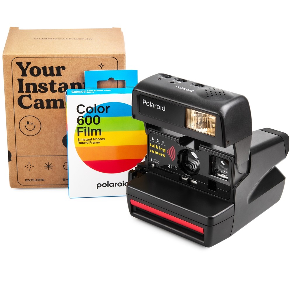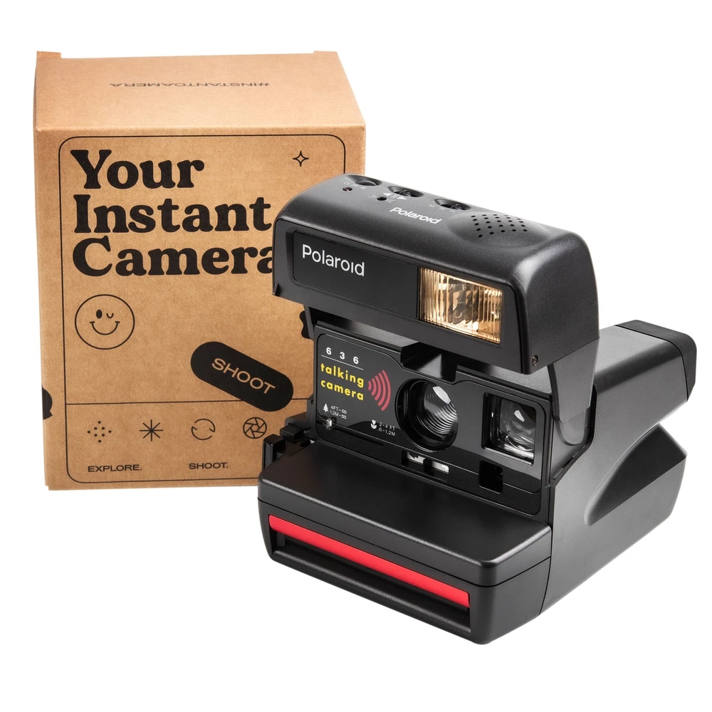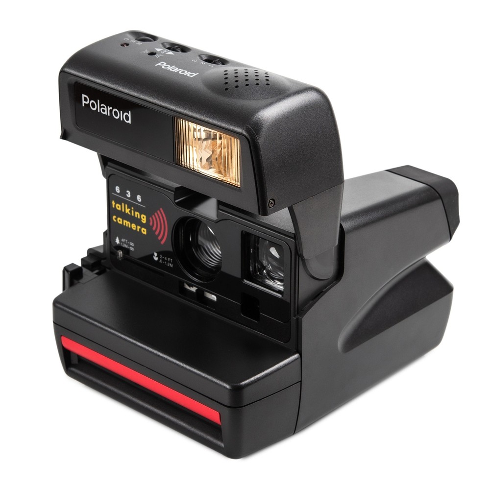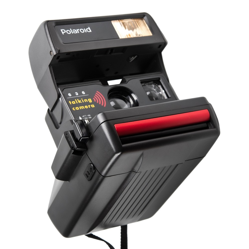 The Polaroid 636 Talking Camera is an instant camera. It is a very unusual Polaroid 600 camera. When you press the shutter button, it can play sounds and music. For this purpose, the camera has a built-in speaker. It also has a microphone that you can use to record your own sounds. You can choose between three of your own sounds and three predefined sounds. The other functions are comparable to the Polaroid 636 Closeup. It was introduced in the mid-1990s. The body of the camera is made of plastic. Brand: Polaroid Name: Polaroid 636 Talking Camera Type: Instant camera Type of Film: Typ 600 Focal length: 116 mm Maximum aperture: f/11 Focus: Fixed Shutter speeds: 1/200 s to 1/4 s Flash / Flash connection: Built-in flash