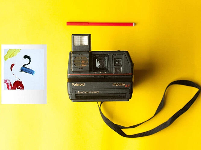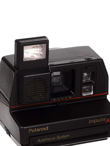 Designed for Polaroid's 600-series integral film, the Impulse AF models are similar in body design to the autofocus models released for SX-70 film (usually known as OneStep AF models) in that they feature a non-folding plastic body, plastic lens and sonar focusing. The Impulse autofocus models feature higher quality 3-element lenses than the fixed-focus Impulse models. The Impulse AF is usually found in a mid grey colour, but there were a variety of different colours of Impulse released including yellow, blue and purple. The body is a hard-wearing plastic, and features rubber grips around the rear, a tripod-socket, flash-ready light, film counter and timer LED. The flash is raised by pressing down onto the top of the unit; this also turns the camera on and retracts the lens cover. Features common to all Impulse autofocus models are: Three element plastic lens with fixed aperture (116mm, f9) 90 cm (3 ft) minimum focus distance. Exposure compensation controls below lens. Self-timer function Flash fires for every shot; cannot be user controlled. With its unique shape, rubber binocular grips and pop-up flash, the Polaroid Impulse might be the oddball of the 600 family, but it’s got a certain charm about it. Its rugged design makes it perfect for anyone with a habit of bumping into things, and the automatic flash makes it ideal for late nights and parties. Just don’t drop it in the punch bowl, it’s not that tough.