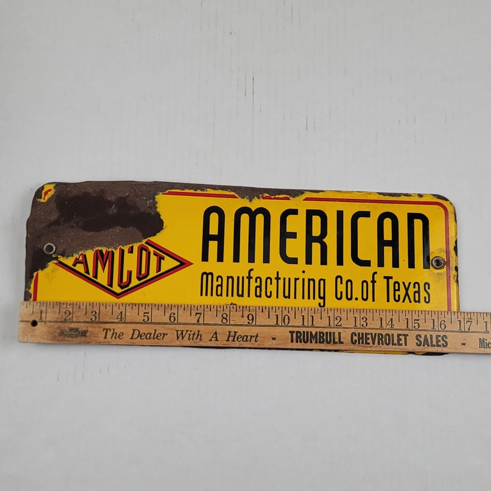 Vintage Porcelain AMCOT Gas & Oil Sign American Manufacturing Company Of Texas 16.85" Tall X 6.5" Wide See Pictures For Exact Condition