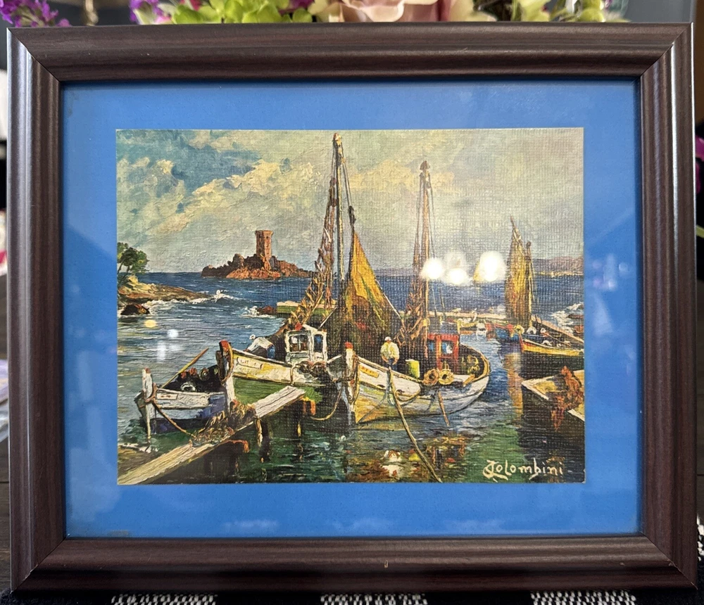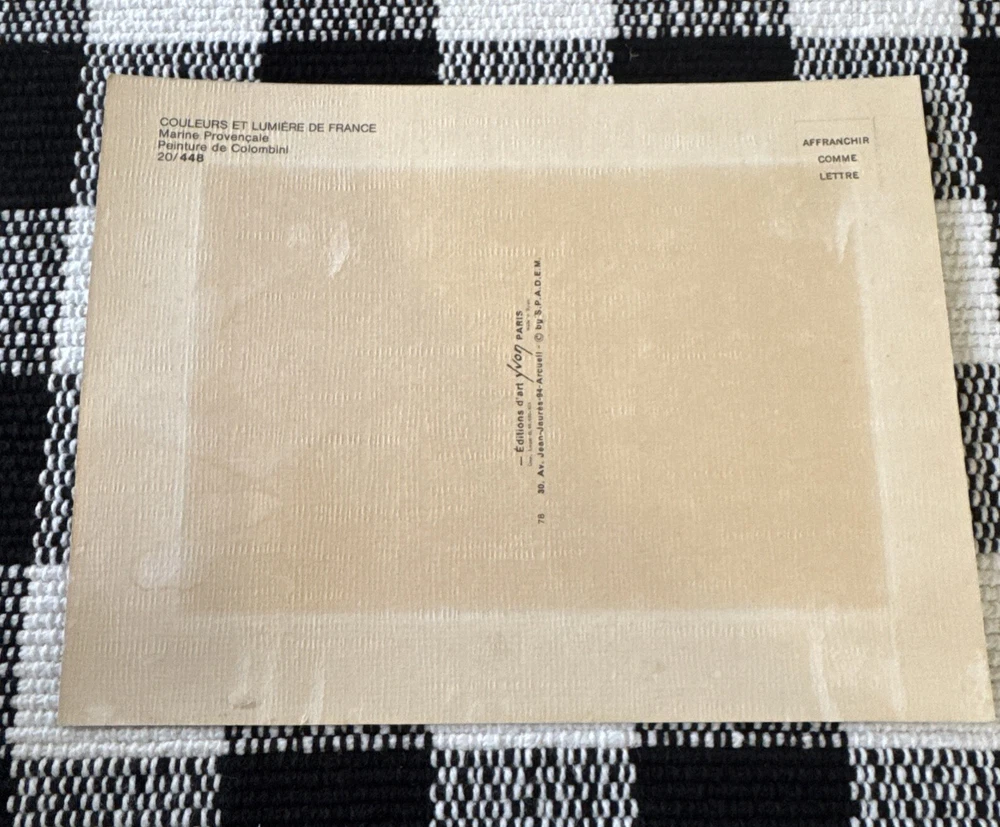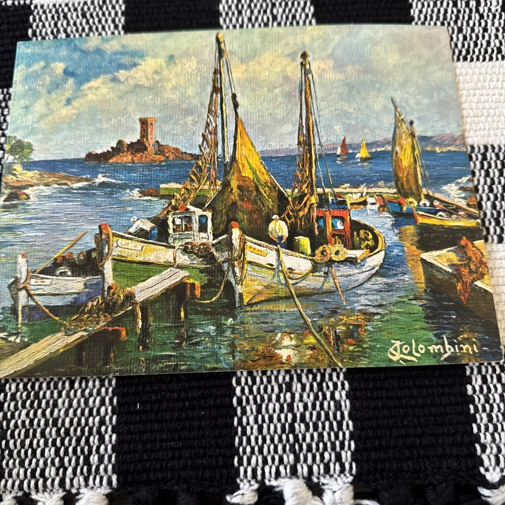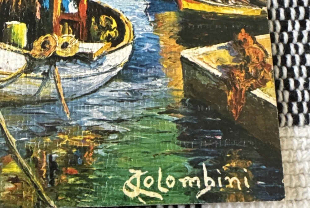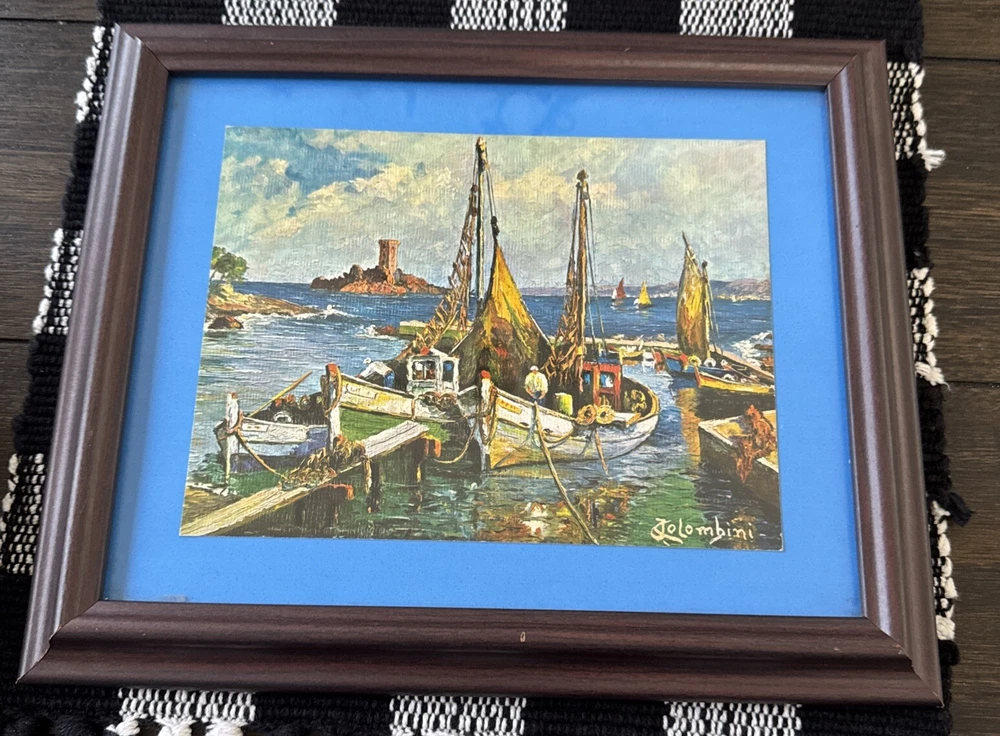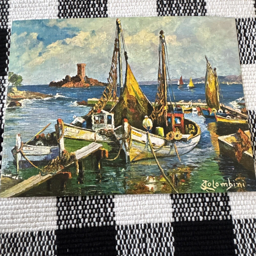 This vintage postcard features a beautiful image of boats in Paris, France. The artist, J Colombini, has created a stunning piece that captures the essence of the city's waterfront. Measuring 7.75 x 6 inches, this licensed reprint is a great addition to any collection. Made from cardboard and paper, this non-standard sized postcard is perfect for all occasions. It is a topographical postcard that showcases the beauty of Paris, Île-de-France. The postcard is unposted and features fishing boats and docks. This collectible item is a must-have for any postcard enthusiast or lover of Parisian history. Comes with picture frame.