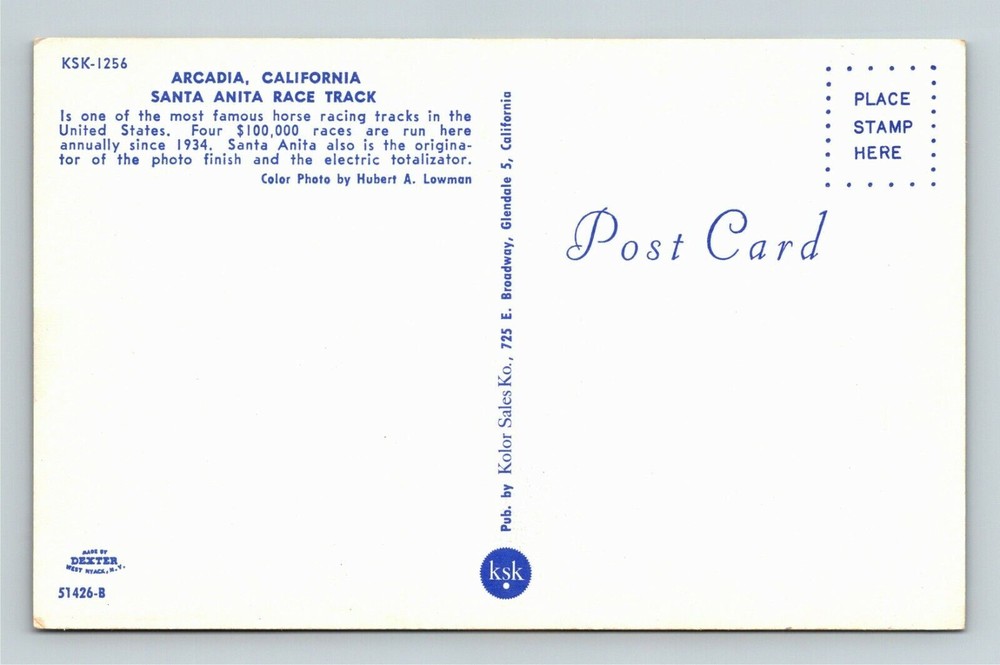 This vintage Santa Anita Race Track postcard is a fantastic find! The classic 3.5x5.5 size and retro California racing scene make it perfect for collectors or decor. Great condition, affordable shipping, and the seller offers thousands of weekly auctions—amazing value for nostalgia lovers!