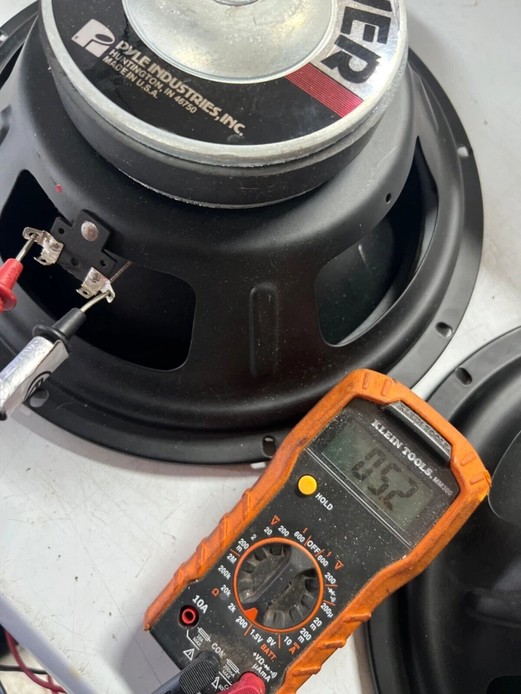 Two Oldschool PYLE Polly cone WP1240 woofers. Both work but need foam !