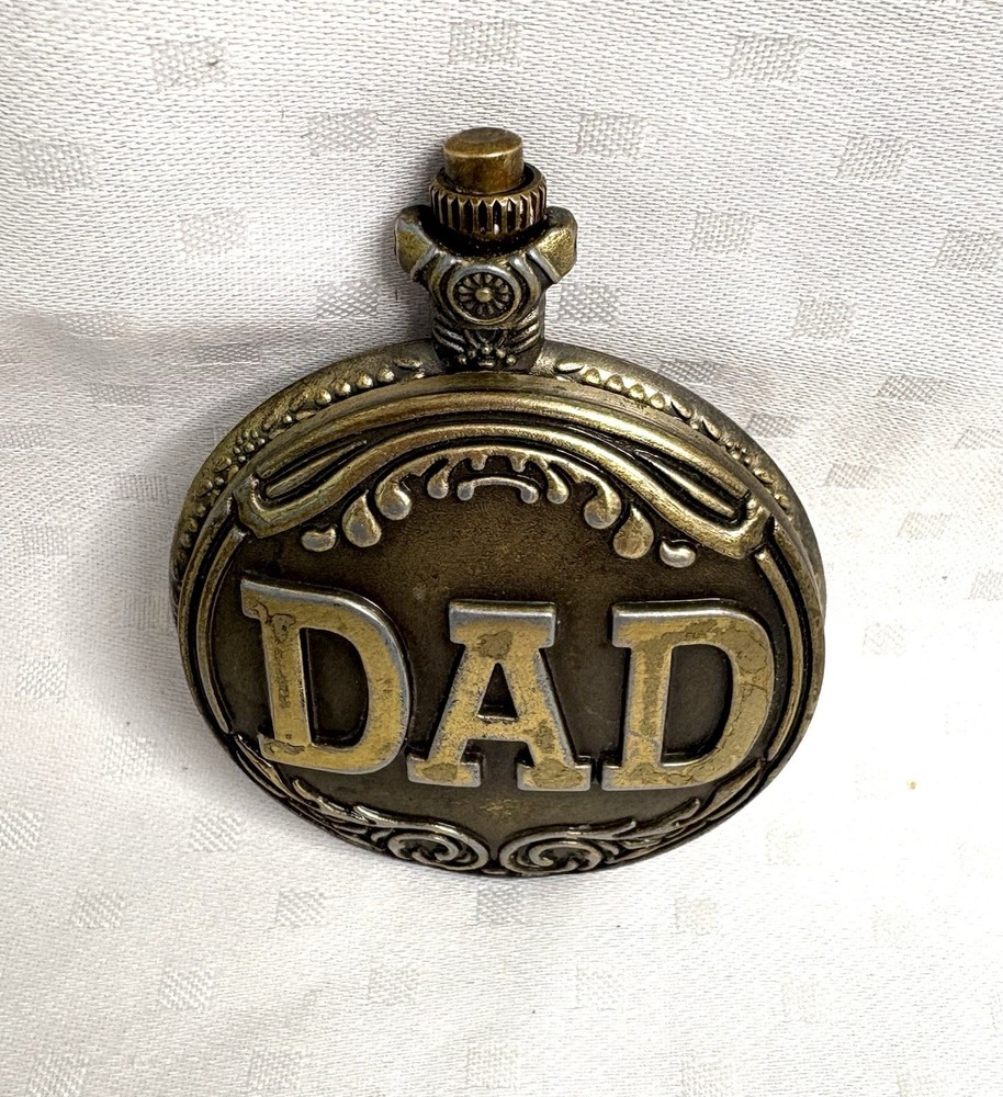 The Quartz Analog DAD Pocket Watch is a stylish and practical timepiece for men. With a polished silver case, Arabic numerals, and a full hunter closure, this unbranded pocket watch exudes classic charm. It features a quartz movement and a 12-hour dial, ensuring accurate timekeeping. This modern pocket watch is perfect for everyday use and can be a thoughtful gift for any occasion. Made of stainless steel, it is durable and reliable, and it is water resistant, making it a practical choice for those who appreciate timeless style and functionality.