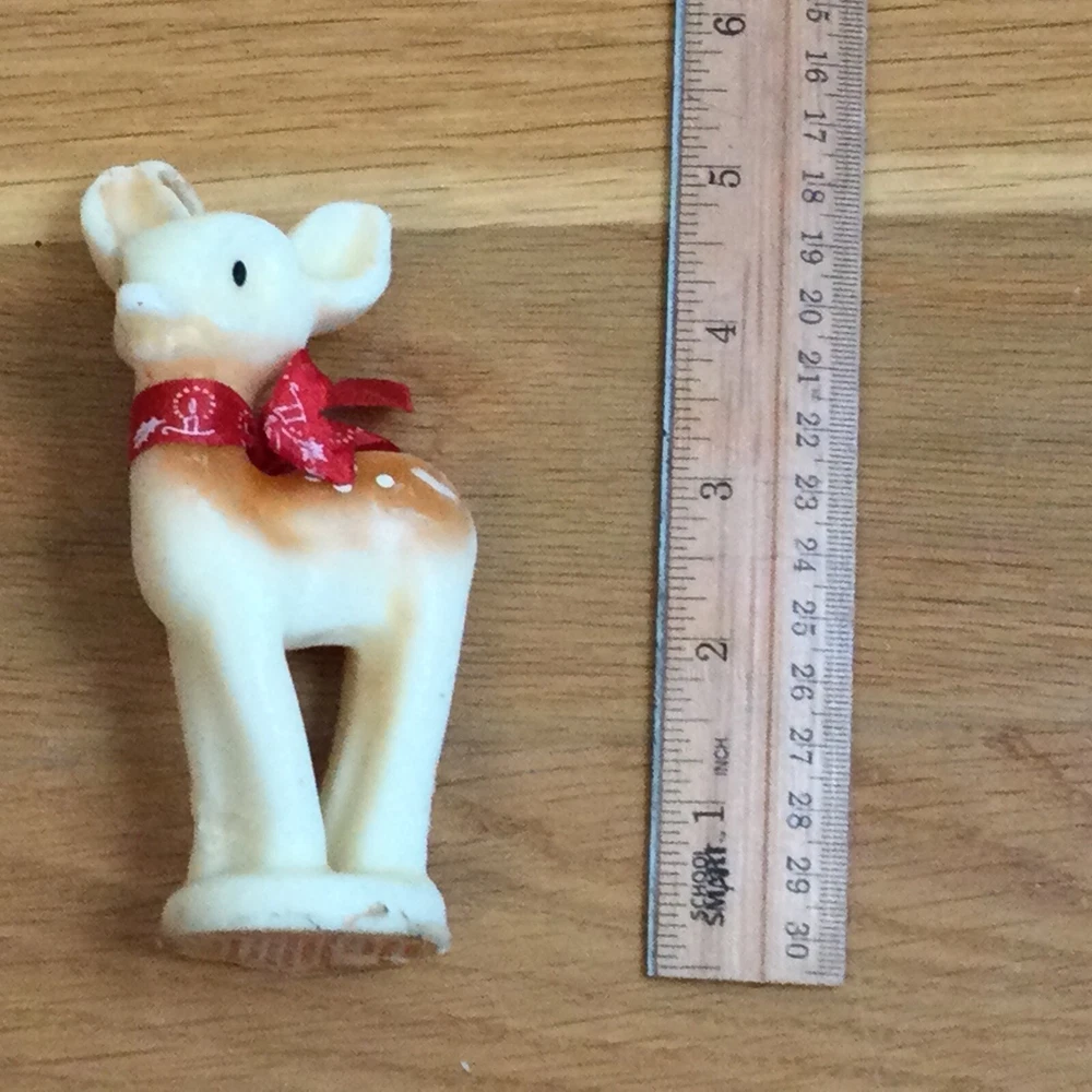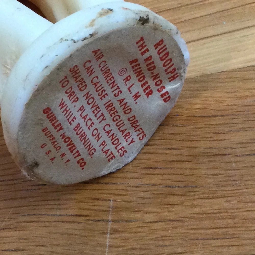 Vintage and rare Rudolph the Red-Nosed Reindeer candle figurine. Made by RLM. Please see photos to supplement this description. Ruler indicates size. I am happy to combine shipping so please see my other listings this week (including LOTS of other vintage and collectible items!). Thanks and good luck!!