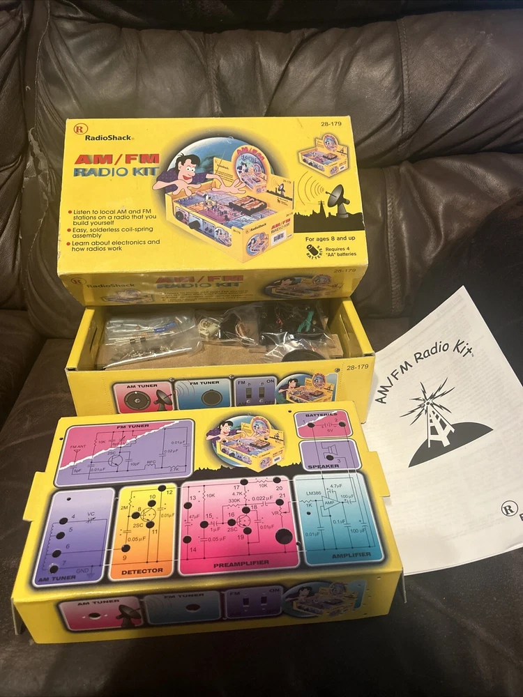 Brand New, Open box, Vintage rare Radio Shack AM/FM Radio kit. Complete. The box is in great condition and the sleeve for the box has some wear as shown in the pictures. Please refer to the pictures for details any questions feel free to ask thank you.