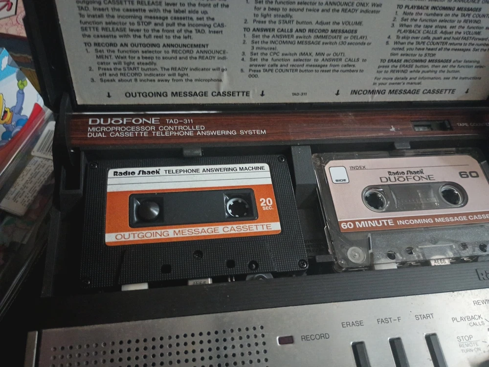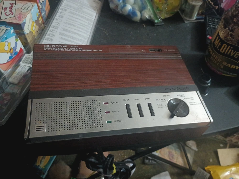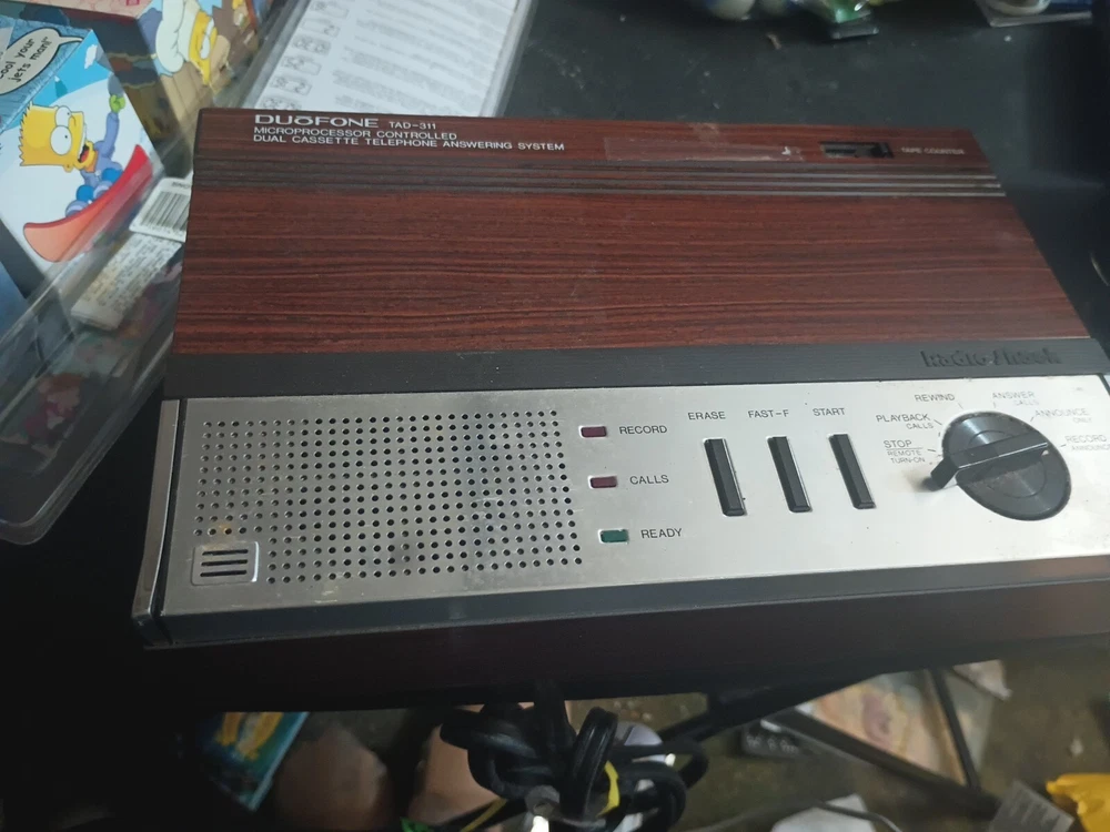 Features:2 Cassettes Included, CounterUPC:Does not applyModel:Duofone Tad-311Brand:RadioShackYear Manufactured:1986Country/Region of Manufacture:Korea, Republic ofType:Answering MachineMPN:TAD-311gtin13:Does not applyColor:Brown
