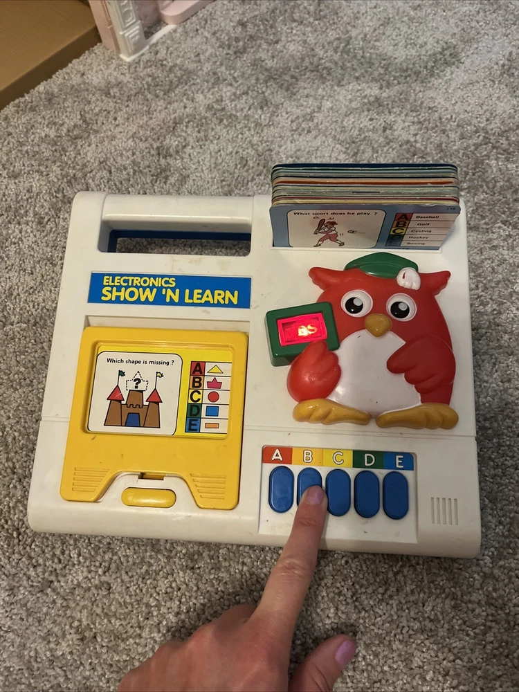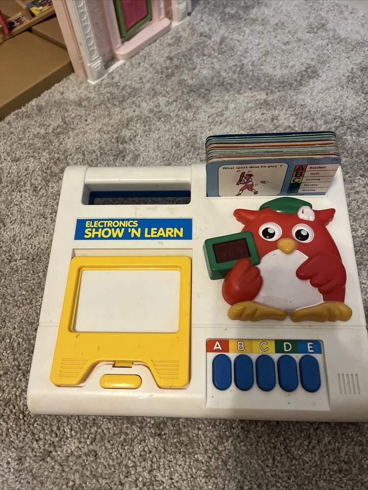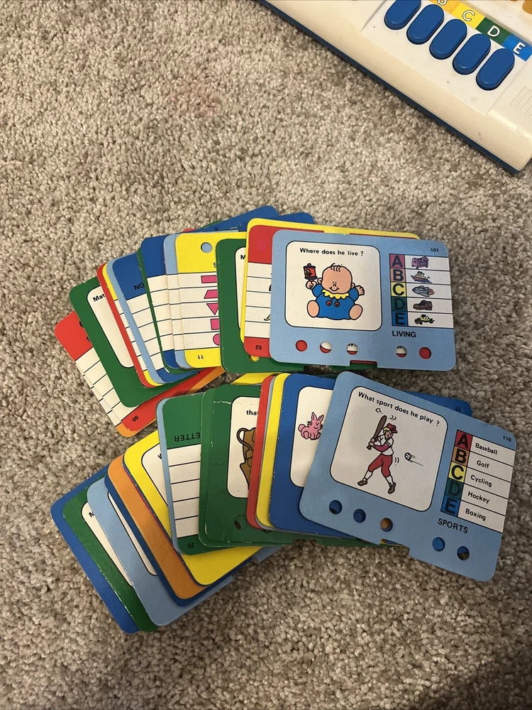 Great vintage learning toy from Radio Shak. Takes 2 AA batteries and WORKS! Tested and working. Plays a song for a correct answer and buzzes for incorrect answers.