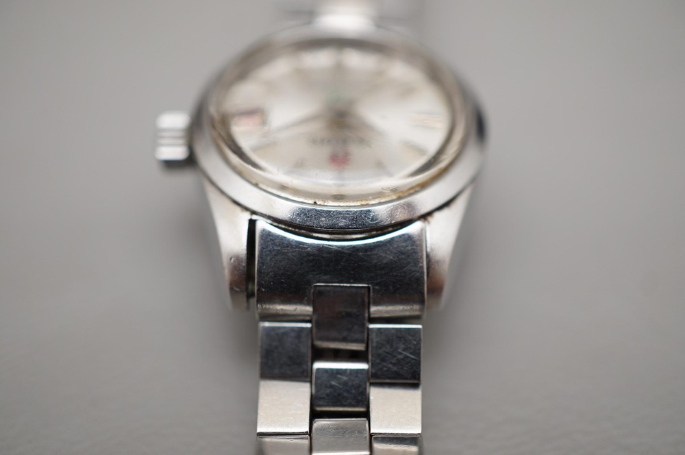 For sale is a Rado Green Horse 759-1 Silver Dial Ladies Automatic Swiss Watch Movement: Mechanical (Automatic) Condition: Used Strap: Original bracelet sized to approximately 17cm with no extra links Box: None Warranty card: None Manual: None Service history unknown. Approximate measurements: Case diameter: 22mm (excluding crown) Lug width: 12mm Lug to lug: 28mm Thickness: 10mm Please inspect all product photos in detail prior to purchase. Item does not include accessories beyond what is described and photographed.