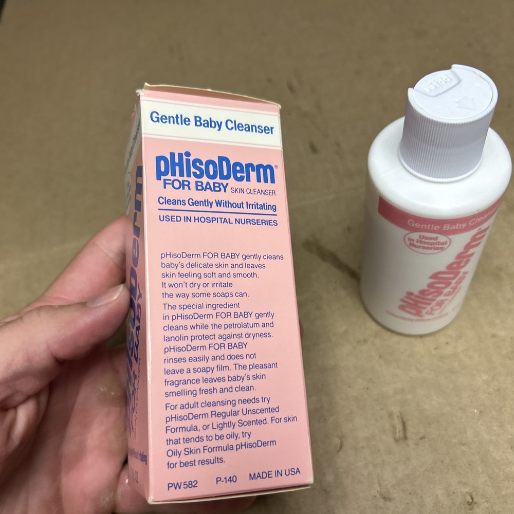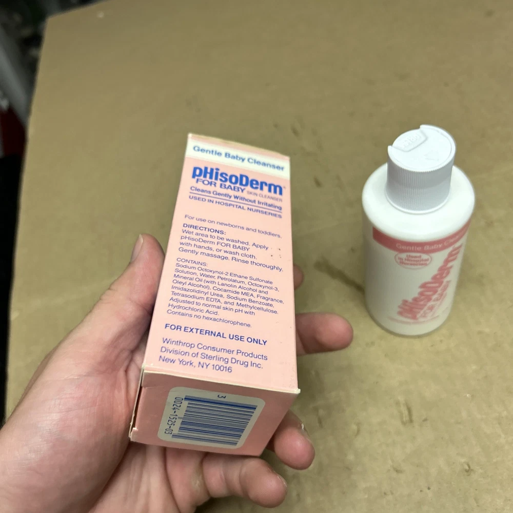Vintage **Rare** 5 oz Phisoderm For Baby Skin Cleanser/Conditioner. The item appears to be full and weighs the exact same as another one that I have, but I’m not sure if the item should be used due to age. The bottle has some marks and wear. See pictures to see the item.