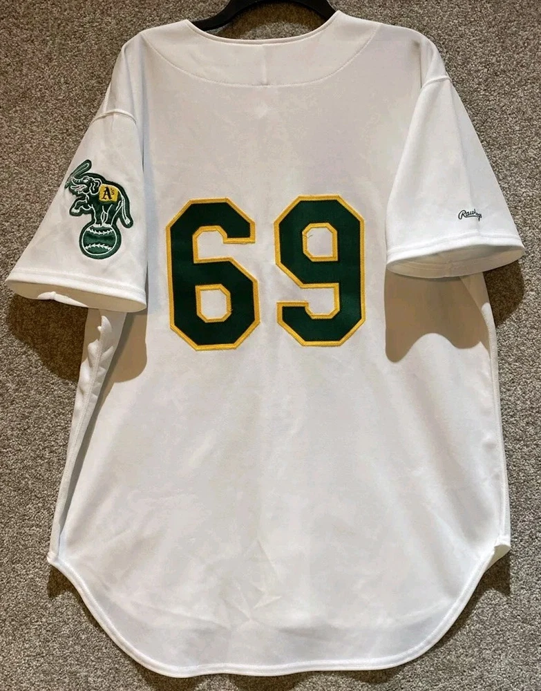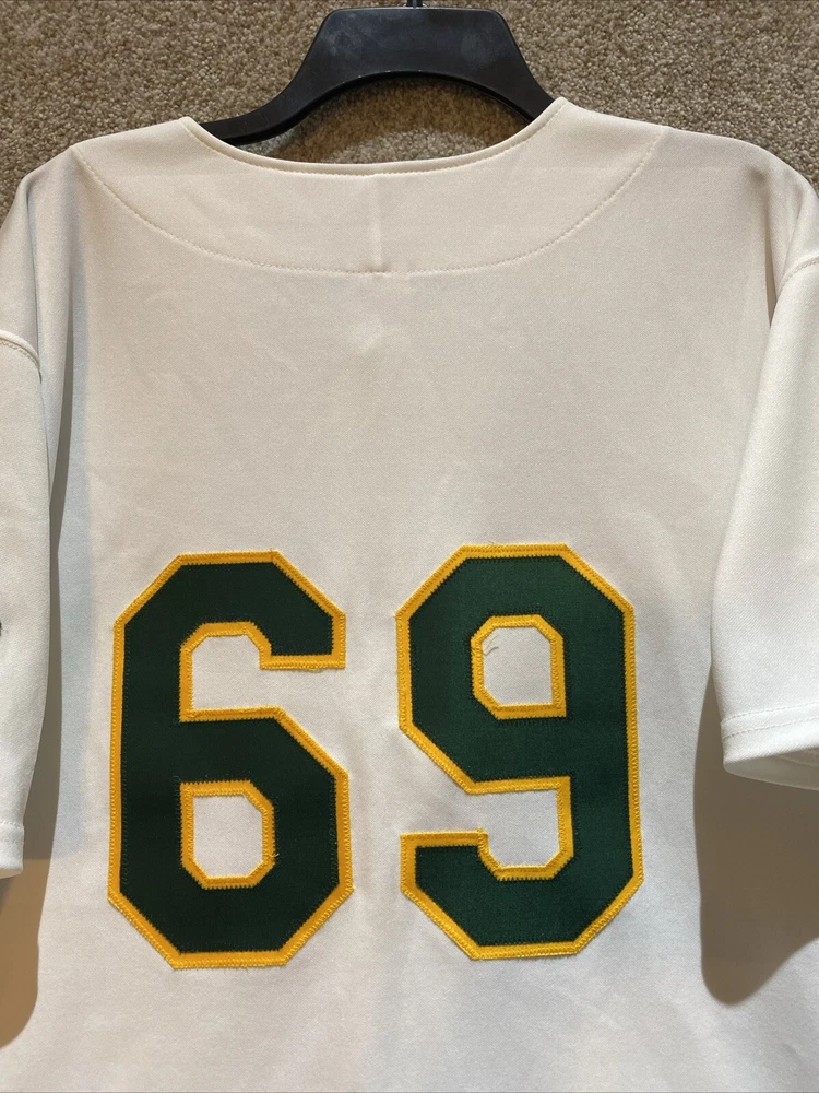 Very good, no holes or stains. Pre-Owned, Ships USPS Ground Advantage. Vintage Rawlings MLB Mens Oakland Athletics #69 Baseball Jersey Size 48 USA