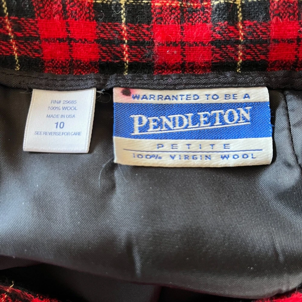 Classic red and black plaid pencil skirt is a staple piece for your closet that will never go out of style. Subtle yellow stripes set this apart from buffalo plaid and make it less casual. Fully lined. Side closure with zip ans button. Condition: Excellent Flaws: None Brand: Pendleton Materials: Wool Please review measurements before purchasing and feel free to ask any questions. All sales are final. Open to reasonable offers. Measurements taken while flat: Waist: 28 Hips: 40 Length: 24 Labeled a 10 - fits more like a 4/6