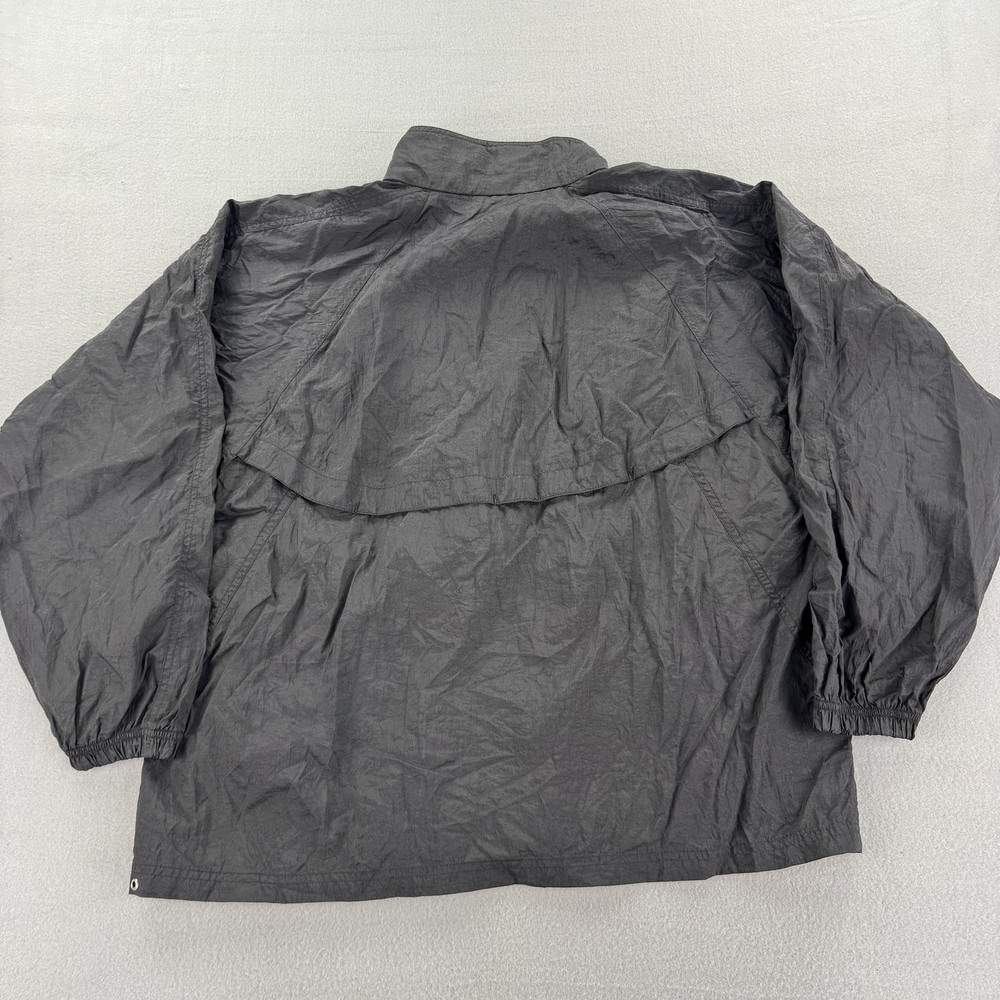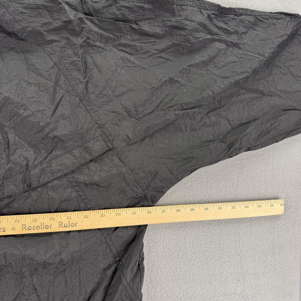 Vintage Reebok Jacket Mens XL Black Purple Nylon Windbreaker Full Zip 90s Retro Condition: Good used condition with minor wrinkling and light overall wear from normal use. No major flaws noted. Shell: 100% Nylon as indicated on interior tag Classic Reebok embroidered logo in purple on left chest Full zip front closure with stand-up collar Purple inner collar detail for a pop of color Elastic cuffs and waist for secure fit Mesh lining for breathability Tag size: XL (Mens) Approximate measurements: 31" sleeve (collar to cuff), 29" length (collar seam to hem) Made in Thailand This authentic 90s Reebok windbreaker features vintage styling perfect for athletic or streetwear looks.
