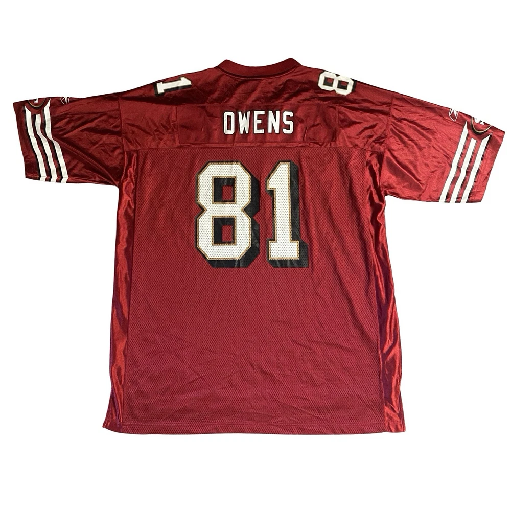 Here’s A Really Cool Vintage Reebok San Francisco 49ers Terrell Owens Jersey Size 2XL. It’s In Excellent Condition w/ No Rips Or Stains & Measures 27” Pit To Pit 35” Top To Bottom. Please Message Us With Any Questions You May Have & We’ll Be Sure To Respond Swiftly. Have A Great Day!