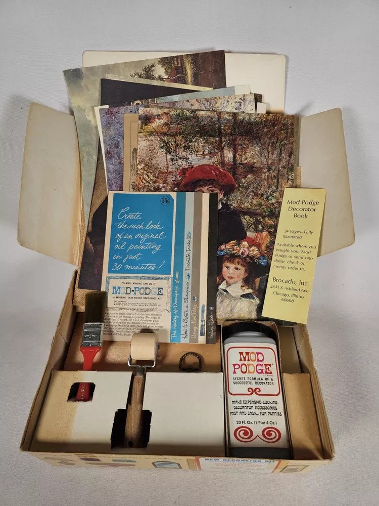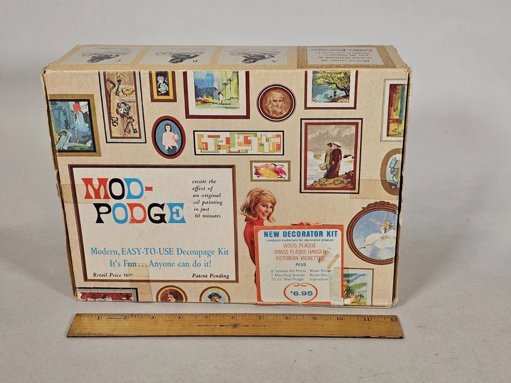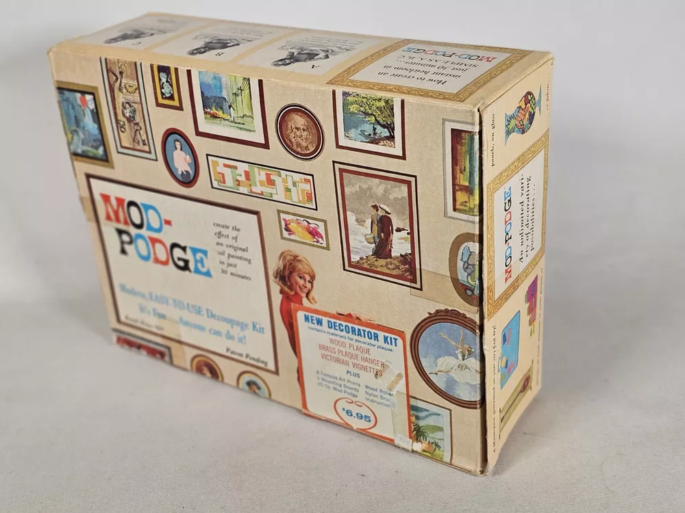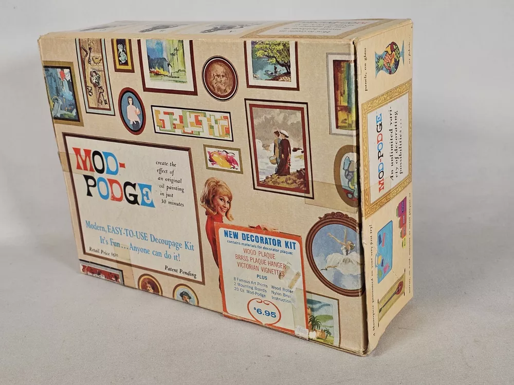 Vintage 1960's Mod-Podge Decorator Kit This kit is complete and includes all raw materials, instructions, and supplies. (see photos) Vintage • Retro • 1960s • Decor • Crafts • Kitch