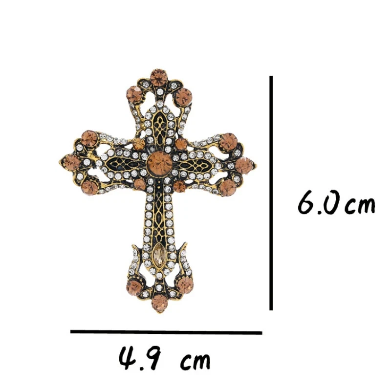 Vintage Rhinestone Cross Brooch Men's Court Style Blazer Pin Accessories Pins
