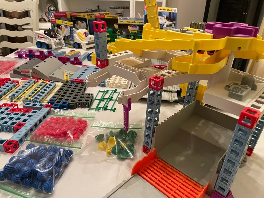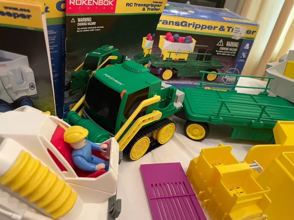 Description: Huge Lot Vintage Rokenbok Radio Control Building System: Vehicles and Building sets. Three Vehicles, Two Controllers, One Deck, Posters and Building sets. This was originally purchased from a high-end educational toy store and is categorized a STEM Educational Toy. Really a lot of fun. We purchased it for one of our children, so, believe me, I know they were quite the commitment, and hold their value. The entire group has always been well cared for in proper containers. Condition: Used, Very Good Condition. Zoom-in on all photos. I took pictures from several angles, so in that case it may appear there are two of certain pictures. I checked the vehicle and controller-functions; they were working, however, the set is vintage, so I cannot guarantee all mechanical parts. Zoom-in on all photos, however, some of the pictures are from a square cut out of the original boxes for each set, or advertising paperwork and directions. In this case there could be other items pictured that are not included. Also, there are several really cool unused posters that would be great to decorate a child's room. In this case I opened the unused posters for you to few, however, I cannot guarantee all items pictured in the posters are present in the listing. If you zoom-in on photos you should be able to see individual items included in the sets. I cannot guarantee that each small part is included because I do not know the original inventory of each set; it is a huge lot. -Buyer Pays Shipping -I SHIP FAST -Weight: It will be heavy. Packing will increase overall weight, and BUYER LOCATION determines final shipping costs. Similar sales for similar Rokenbok lots shipped for $100.00 plus. -Please message questions or concerns. Working to earn your Positive Feedback with Value, Variety and Service. -Thank you for your consideration. -Have a great day.
