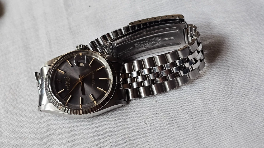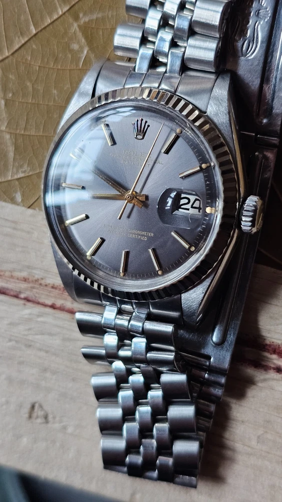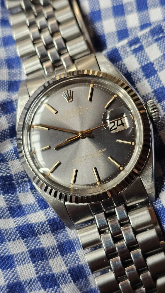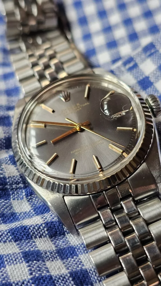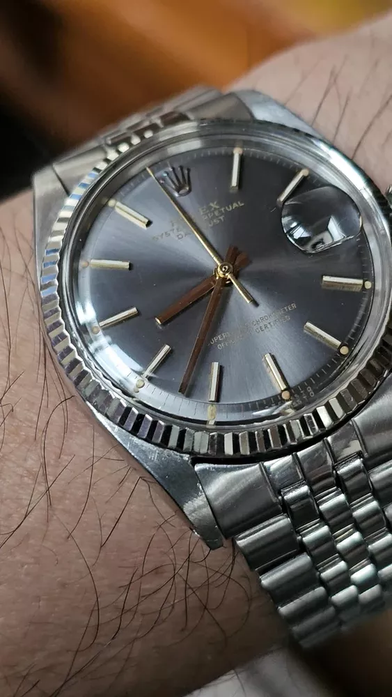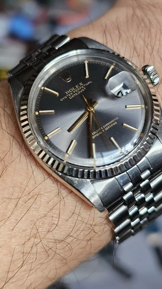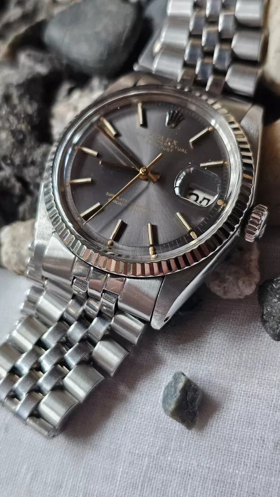 Elevate your ensemble with the timeless elegance of a vintage Rolex Datejust, model 1601, featuring a classic pie-pan gray sunburst dial complemented by baton indexes and a fluted white bezel. Crafted with a robust 36mm stainless steel case and Jubilee band, this Swiss-made wristwatch embodies the perfect fusion of form and function for the discerning gentleman. With its intrinsic 26 jewels, the watch operates on a reliable mechanical (automatic) movement and boasts notable features such as a date indicator and chronometer precision. A testament to its heritage, this 1973 timepiece retains the sophistication of its era, making it a stunning addition to any collection or a standout accessory for formal occasions. I am so excited to be able to offer you a gorgeous vintage Rolex Oyster Perpetual Datejust Ref.1601 men's automatic watch. Rare gray dial never retouched The stainless steel Oyster case, screw down caseback, white gold fluted bezel and crystal are all in good condition for its age. The dial is fitted with gold hands and a date window at 3 o'clock position which is a great asset to this vintage. The robust 36mm stainless steel Oyster case with a screw down Rolex crown and Rolex Jubilee bracelet have remained in good condition with general wear but no significant damage. In fully working order- runs strong and tells good time, powered by a reliable Rolex 1570 movement with 26 jewels. Reference and serial numbers are both sharp and strong. Serial number 347**** says it dates to 1973. The original Rolex Jubilee bracelet will fit up to 7.2 inches wrist. The crystal has been replaced with the new one just before listing this Beauty. You will get exactly what you see. The pictures say it all. Please check all my pictures for more details as they are the best description of the watch much better than I could. I will ship the watch to your door using FedEx International Priority. Expected to arrive in 3~5 days of shipping. No box or papers are included. I do accept PayPal, Sir..... Please note, the buyers are responsible for import and duty fees. I am so grateful you have visited my E-house. Thanks for your attention !!