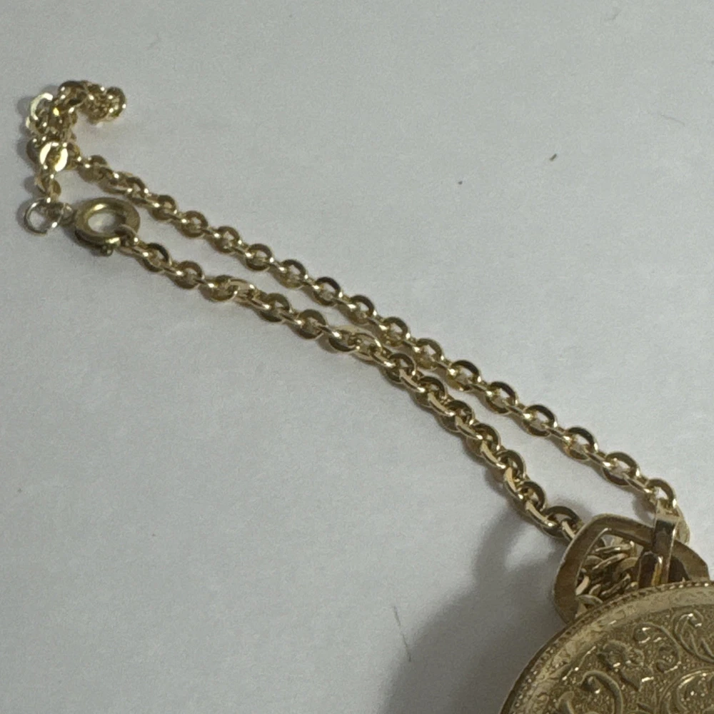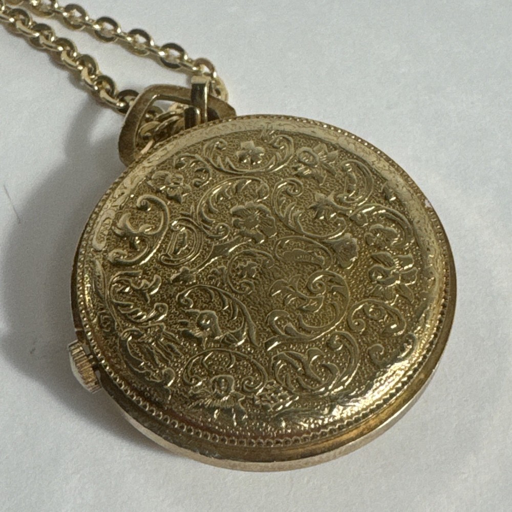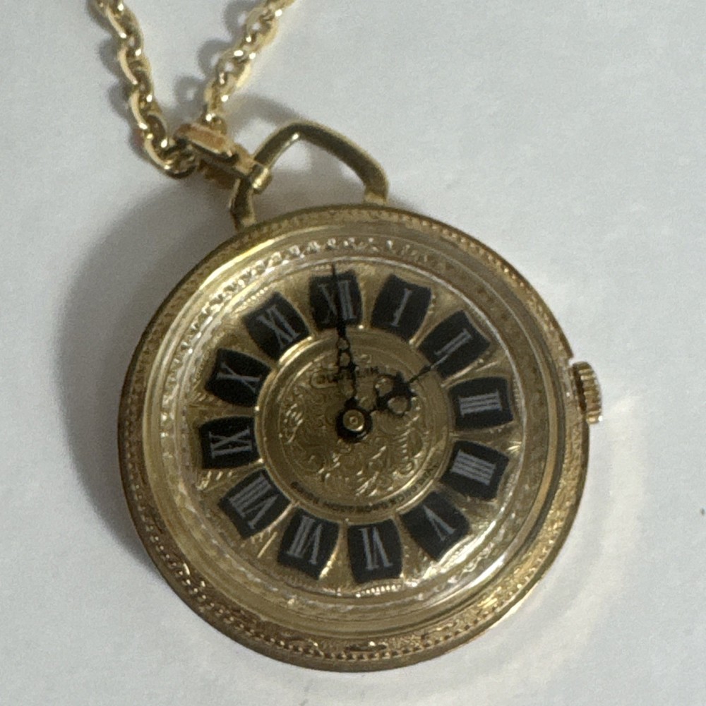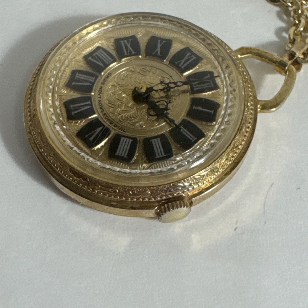 A Vintage Juvelin Roman Numeral Pocket Watch with Chain Swiss Hong Kong, Gift for him/her Unsure if it works. Sold as is